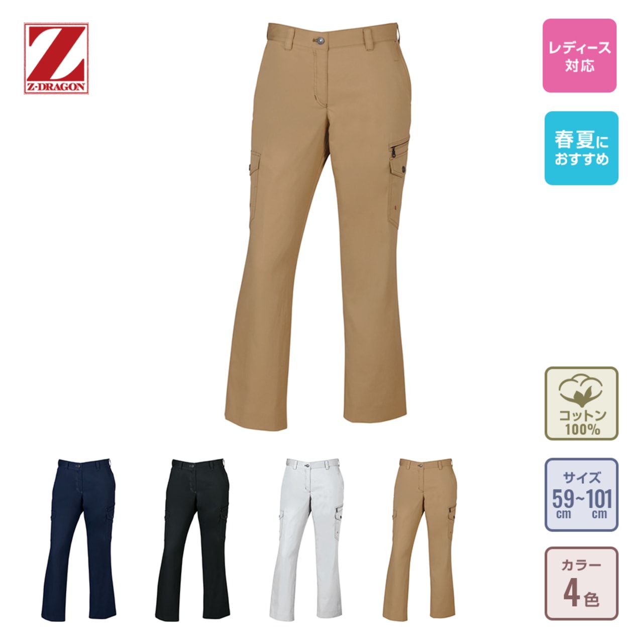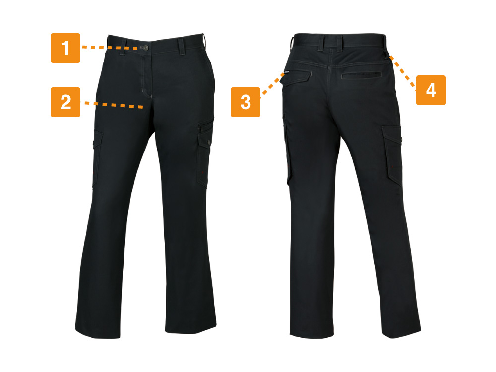 レディースカーゴパンツ(裏付き)は、綿100%で作られています。素材にこだわって作られているところは、トップメーカーの本領発揮です。綿100%ということで、独特の風合いは味があります。また着心地がいいので、気持ちよく作業に集中できるでしょう。また綿は機能性にも優れています。火や油に強いので、火気を取り扱うような工場向きの作業着です。また静電気を溜めにくい性質もあります。品質管理に厳しく、ホコリ一つ持ち込めないような現場にも適したパンツといえます。