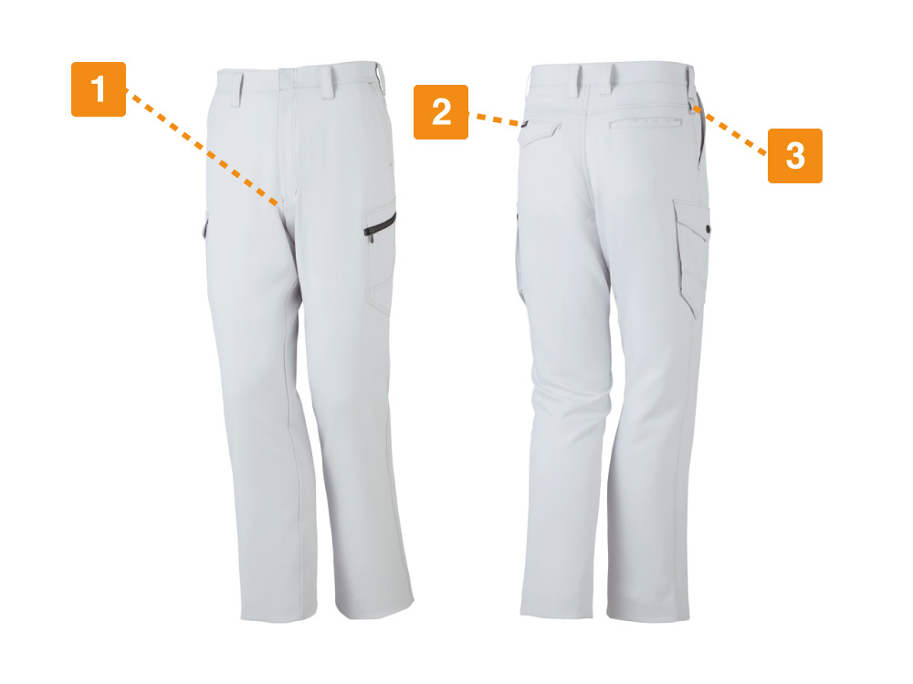 長時間作業していると、どうしても臭いが気になる方も多いのではないでしょうか?作業中はどうしても汗をかくので、気になるワーカーも少なくないはずです。こちらの製品制電ノータックカーゴパンツには、消臭&抗菌テープの使われているところも注目のポイント。汗をかいても体臭をしっかりガードしてくれるので、汗臭さを気にすることなく作業に集中できます。しかも股下にテープが使われているので、ワーカーにとっては便利な機能です。臭いが心配という人でも、安心して着用できるアイテムでしょう。