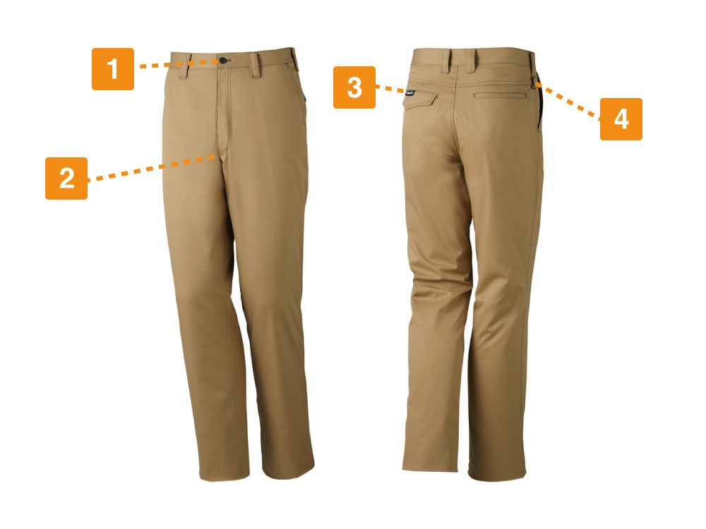 こちらは名前の通りノータック仕様になっているのも見逃せないポイントです。シルエットがすっきりしていながらも、細身すぎないので、スタイリッシュに着こなせます。また長時間作業していると汗をかくこともあるため、汗のニオイが気になるというワーカーもいるはずです。こちらのパンツは、股下のところにDEO+テープがついています。こちらのテープには消臭&抗菌効果があります。汗をかいて臭いを発しても、テープがしっかりと吸収。汗臭さや雑菌の増殖を気にすることなく、作業に集中できます。快適に作業ができるため、作業効率も上がるでしょう。