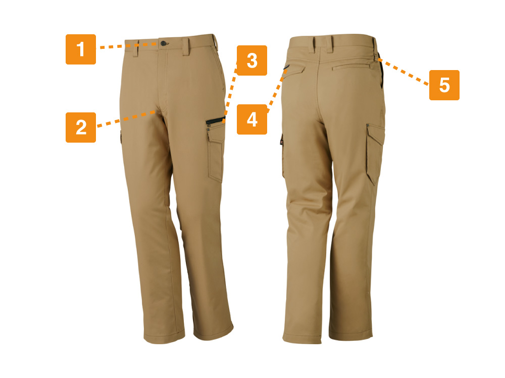 寒い時期であっても作業していればどうしても汗をかいてしまいます。ワーカーによっては、汗臭さが気になるという人も出てくるでしょう。こちらのストレッチノータックカーゴパンツには、DEO+テープが装着されています。このDEO+テープには消臭&抗菌効果があるので、体臭をしっかり吸収してくれます。股下に装着されているため、気になる臭いも抑えることが可能です。こちらのテープのおかげで仕事にも専念できるでしょう。清潔感を重視するワーカーにも満足できる一着です。