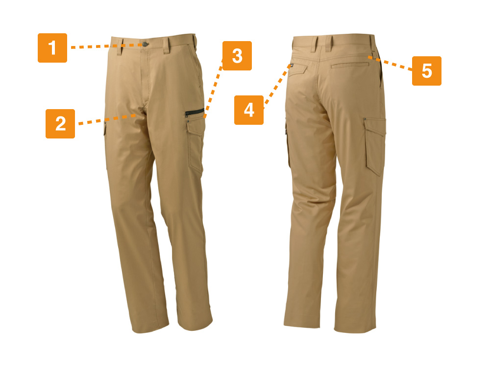 ストレッチ性に優れワーカーの動きを妨げないカーゴパンツ