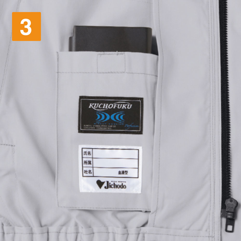 炎天下の作業時に大活躍する空調服。しかし、バッテリーなどの電気製品を搭載しているため、お手入れに気を使ったり、器具の重さを感じたりしたことは無いでしょうか。こちらの空調服 長袖ブルゾンは、軽量ファンを搭載。冷却装置もファンに加え、バッテリーとシンプルなシステムとなっています。また、簡単に着脱することができるので、冷却装置だけ外して気軽に洗濯できるのが魅力的なポイントです。ブルゾンの内側にはバッテリー専用ポケットを設けているので、作業中にバッテリーを落としてしまい、故障させてしまうなどの心配もない魅力的なアイテムです。