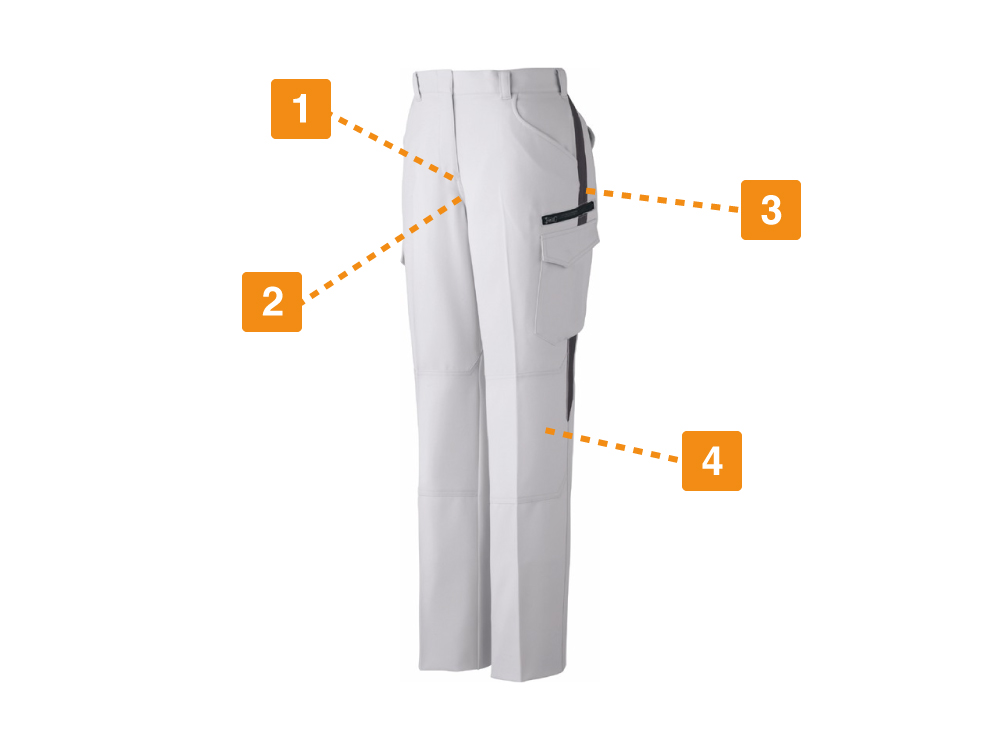 こちらの製品の特徴はなんと言っても防汚性の高さにあります。パンツの生地には東レのナノスケール加工技術を応用したテクノクリーンを採用。ナノレベルで汚れの落としやすさ、汚れの付着しにくさをコントロールしています。作業着の頑固な汚れに悩まされていた方にとっては魅力的なアイテムです。また、生地自体に柔軟性があるため、様々な動作の妨げになることはありません。多面的にワーカーをサポートしてくれるパンツです。