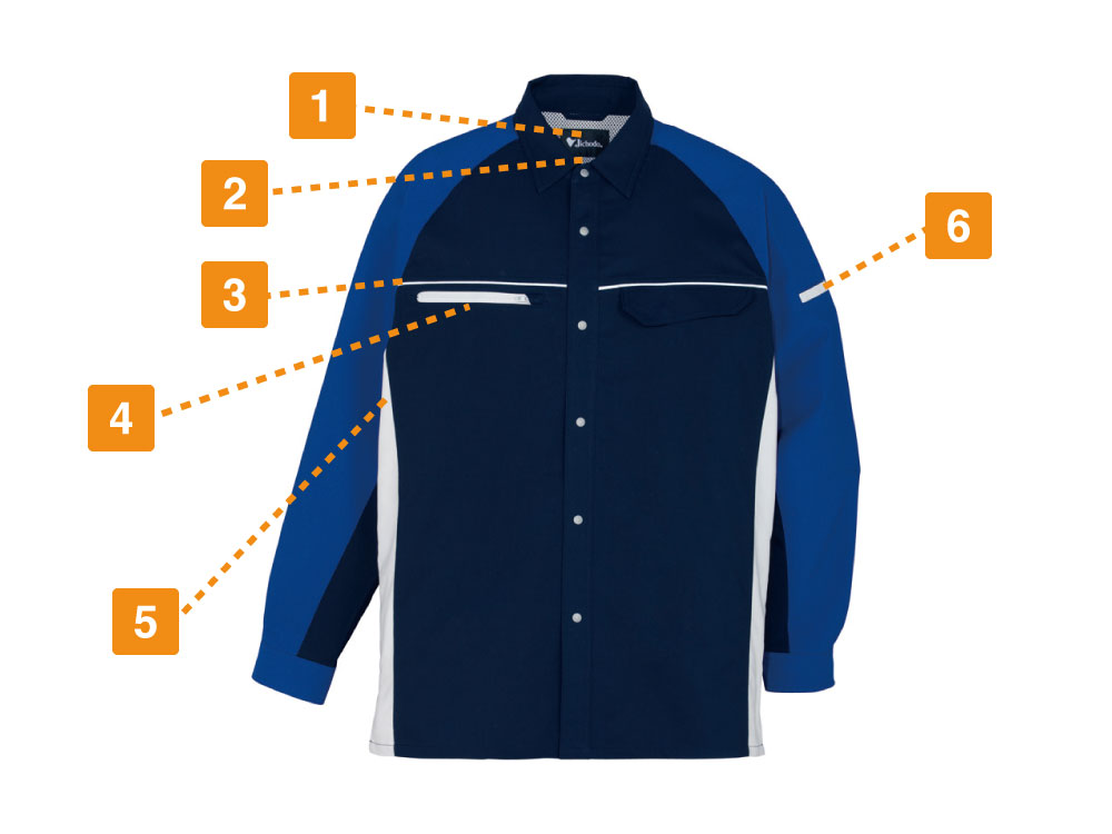 秋から冬にかけての作業着はどうしても厚手のものになり、蒸れて不快な思いをしたり、生地がゴワゴワして動きにくさを感じていたワーカーの方もいらっしゃるかもしれません。そんな方に注目してもらいたいのがこちらの製品制電ストレッチ長袖シャツ。こちらのシャツの注目すべき点は高いストレッチ性にあります。しっかりと生地が伸縮するため、長時間の作業でも疲れを感じにくいのが魅力的です。また、衣類着用時の圧力を軽減するのもポイント。ワーカーの幅広い動きをしっかりとサポートします。さらに生地には防汚加工が施されているため、万が一作業時に汚してしまったとしても簡単にお手入れ可能です。