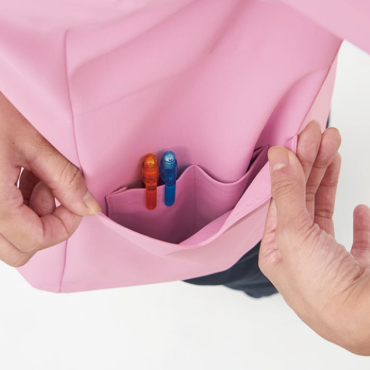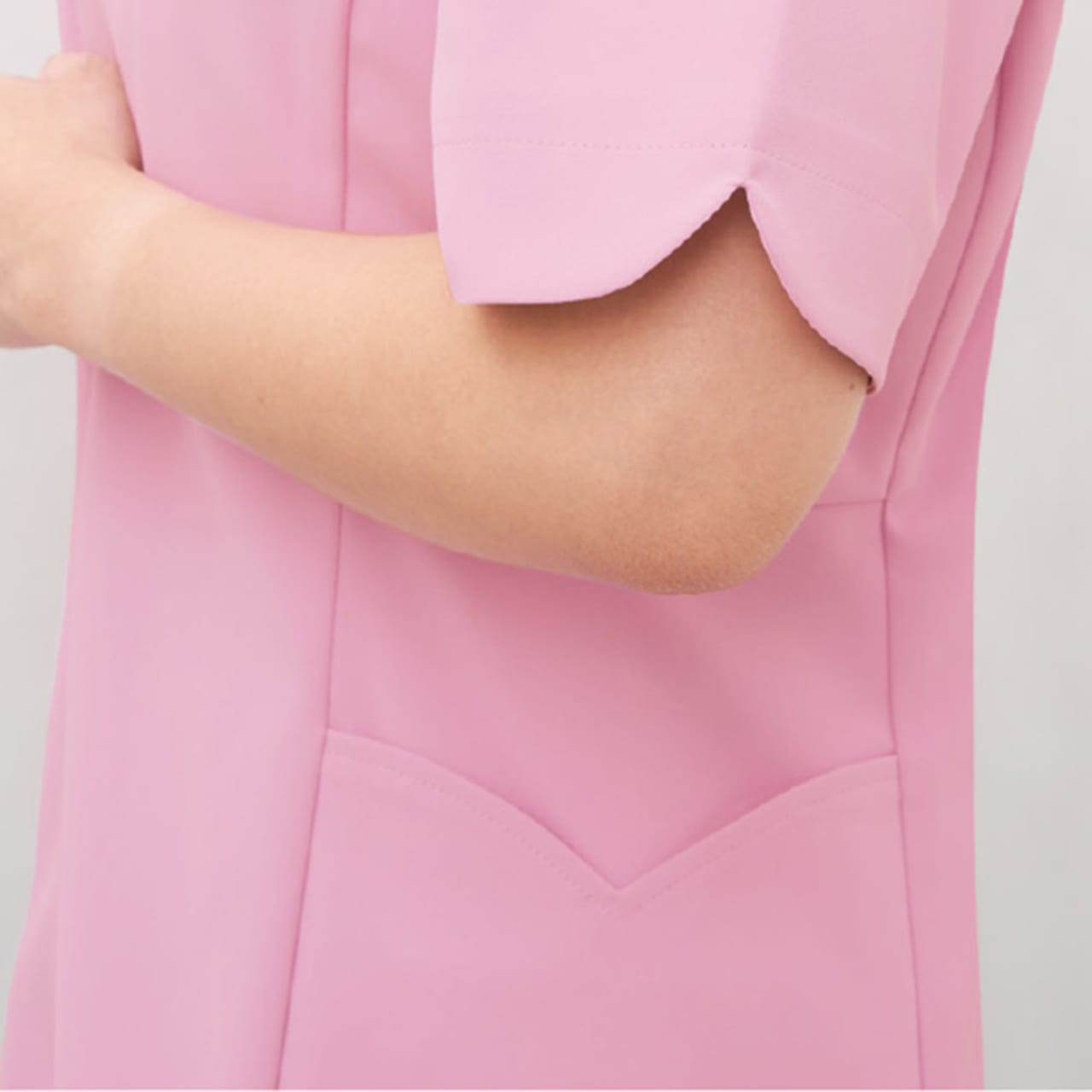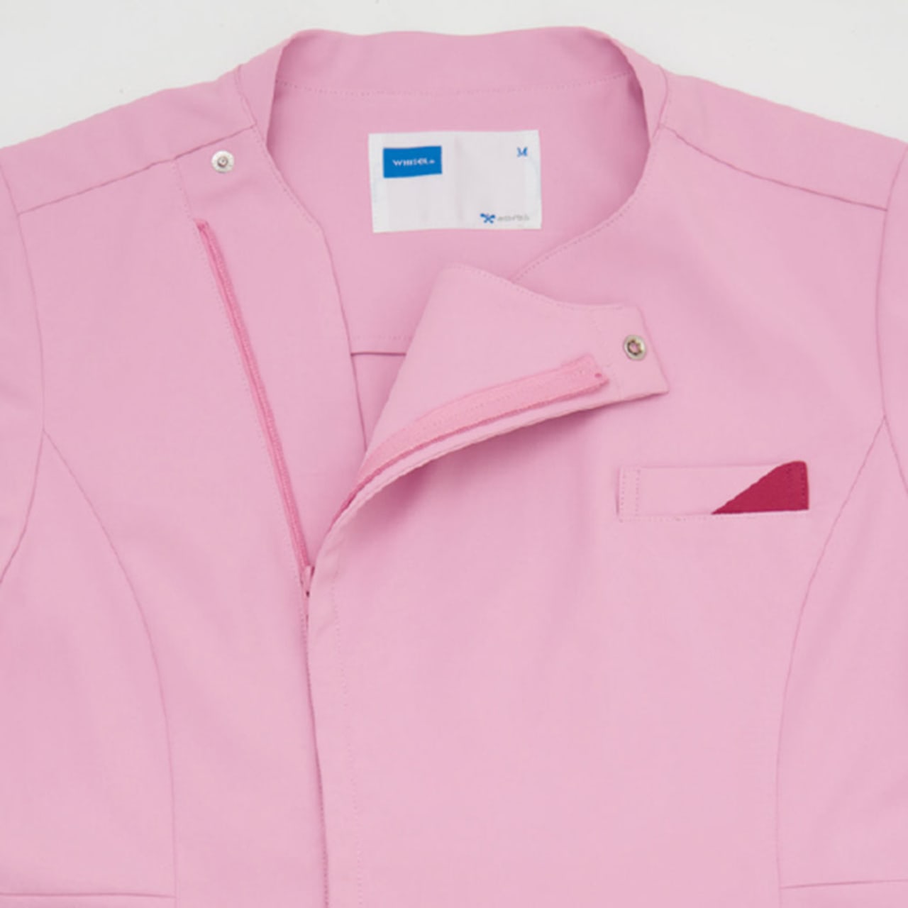 レディース専用のスクラブです。このスクラブの特徴は衿元がハート型になっているのとソデ口の女性らしい形状にあります。さりげない部分ですが可愛らしい女性を演出してくれます。機能がしっかりついているのもGOODポイント!