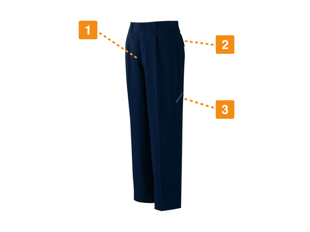 ストレッチ性と防汚加工を施したソフトワーク向けパンツ