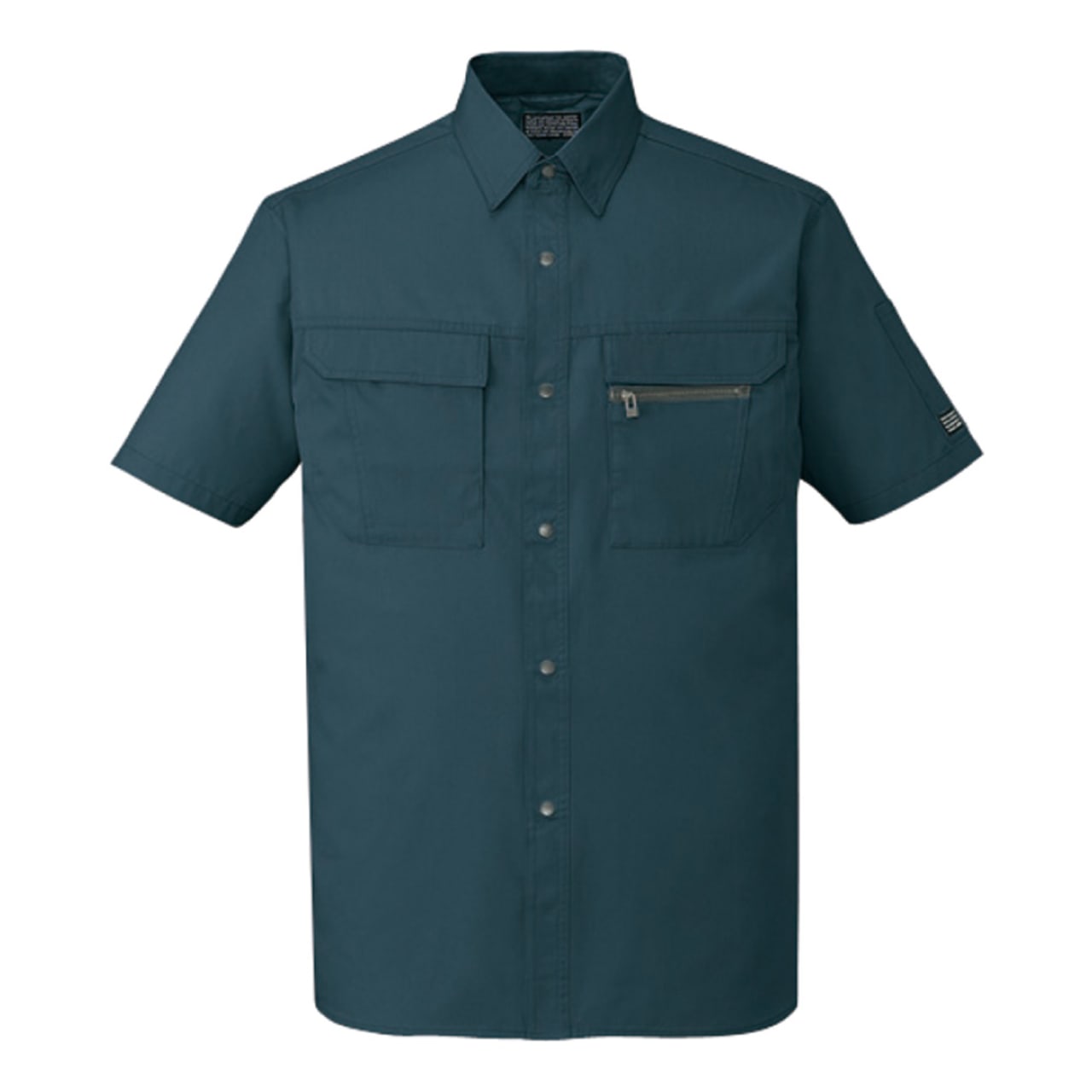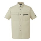 背中のヨークやタックがあるおかげで、動きをスムーズにできる半袖シャツです。胴回りや腕周りなど、体にフィットしすぎずゆとりがあります。腕や体を大きく動かす際でも、シャツのつっぱり感を軽減できます。体にフィットしすぎないややゆとりのあるデザインですが、Sサイズ~5Lまでとサイズが豊富なため、好みの着心地に調節が可能です。全体的にスッキリとした印象で、お客様への対応が必要なシーンに向けた、スマートな着こなしができます。使用している生地は、ツイルでタフさが魅力です。斜めに織った生地は、デニムのような耐久性があります。減量加工のソフトサマーツイル採用で、生地の重みによる体への負担を軽減できます。