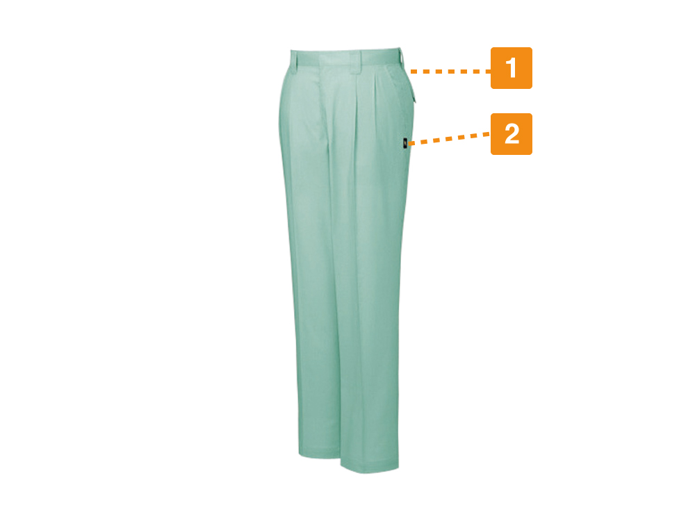 立ったりしゃがんだりする動きが多い現場では、なんといっても動きやすさが最優先されることでしょう。エコ5バリューツータックパンツは、ウエスト部分にツータックを採用。豊富な遊びとゆとりある可動域が快適な運動性とフットワークの軽さを実現しています。また、素材にはポリエステル65%、綿35%が配合されているため、シワになりにくく、耐久性も抜群。さらに、風通しがよく、吸水性にも優れているため、激しい作業環境下でも汗ムレなどを最小限に抑えてくれる優秀なウエアとなっています。