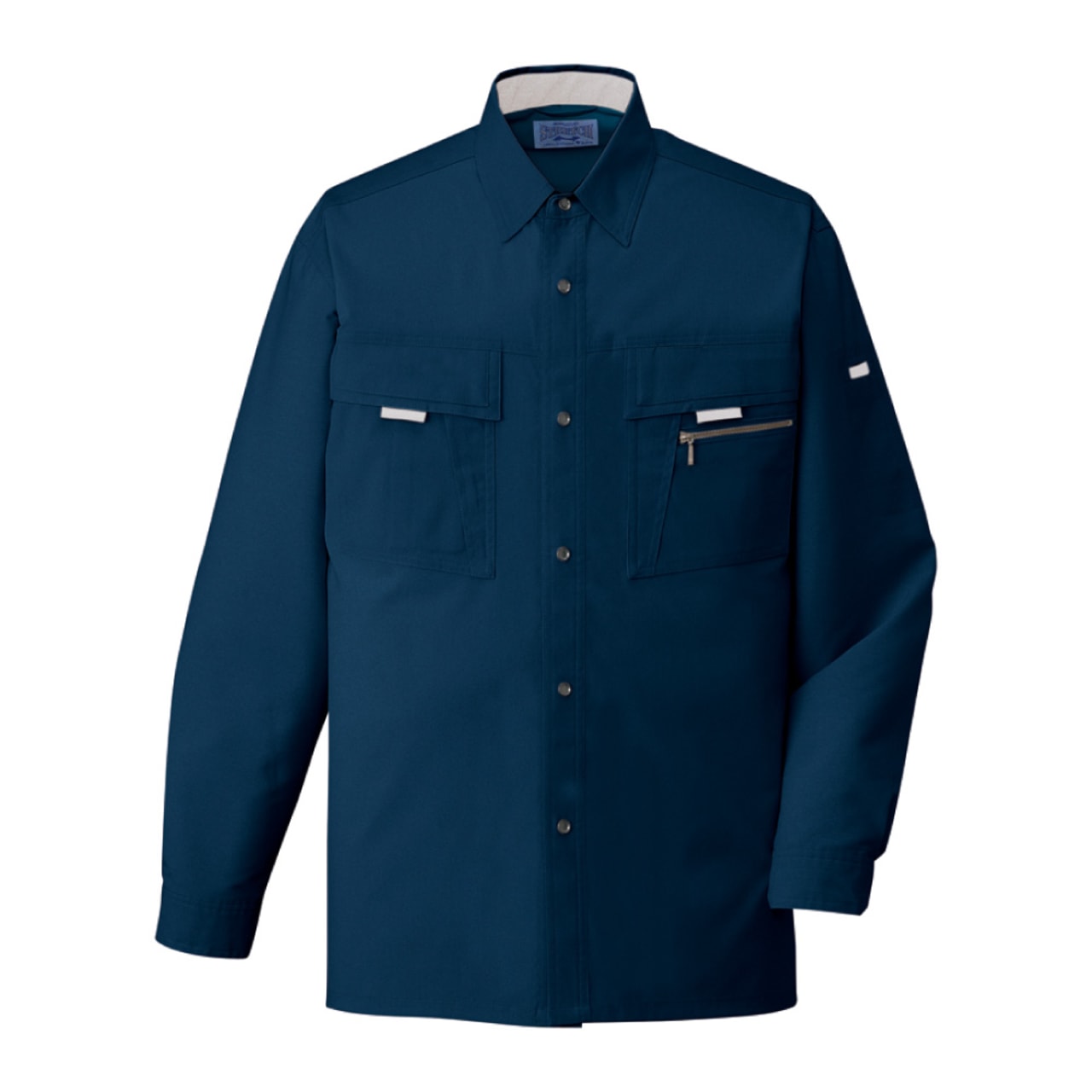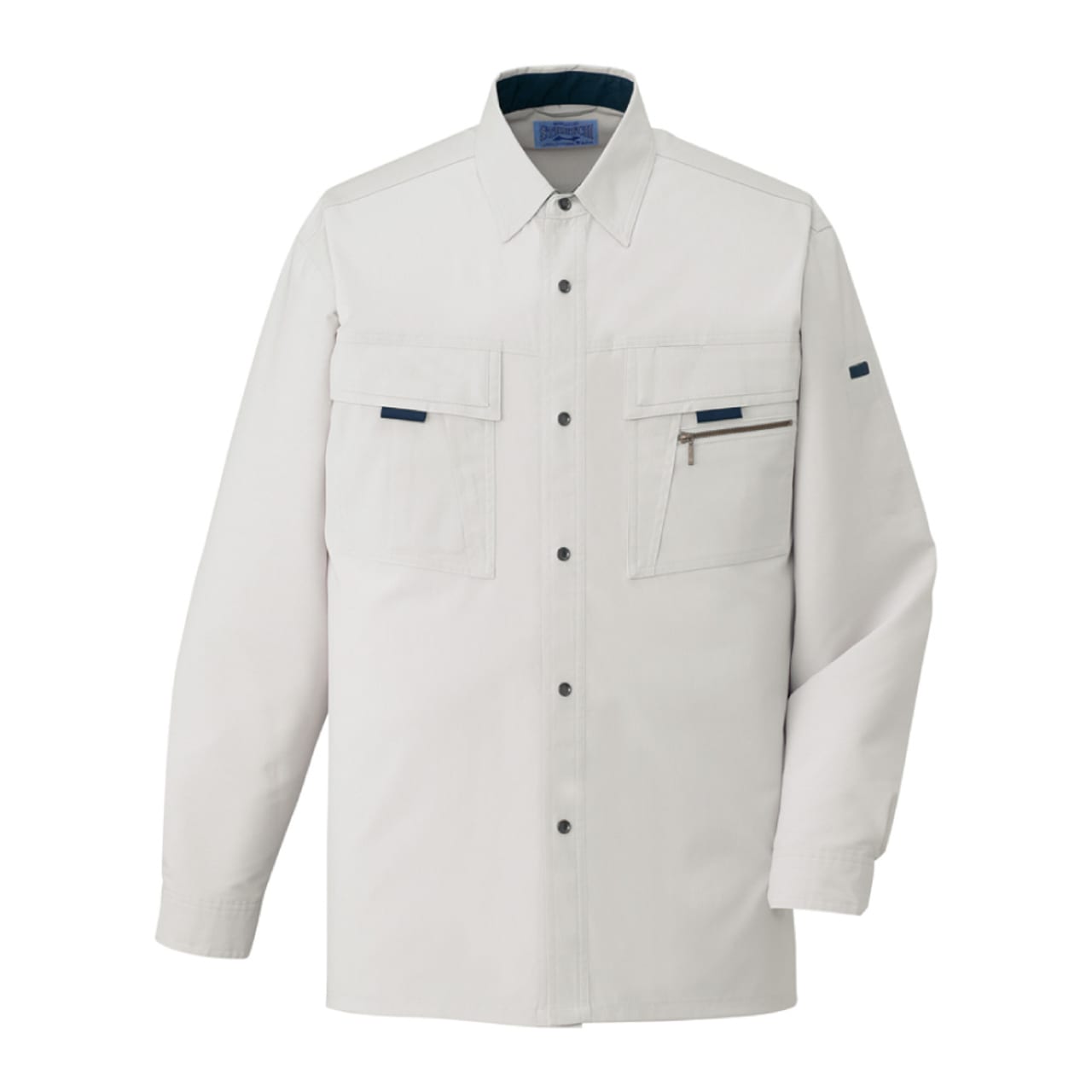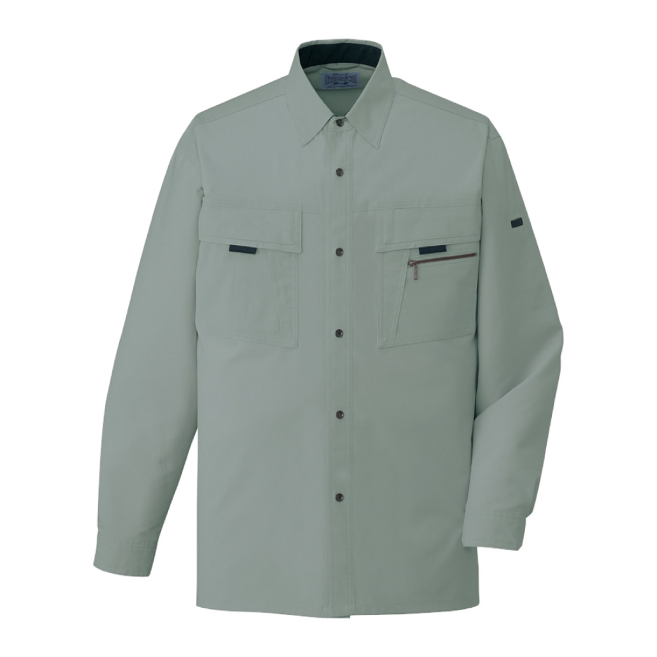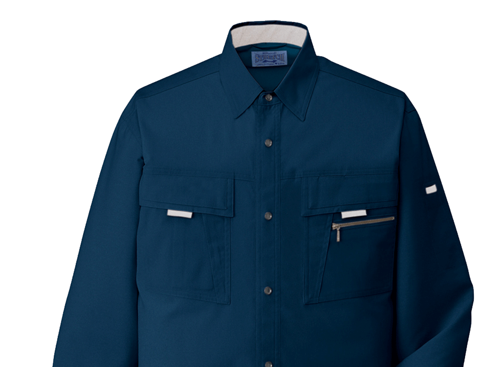 抜群に着心地がよく動きやすい、ノンストレスで安定感のある着用感が、まるごとストレッチ長袖シャツの魅力です。生地の伸びがよく、さまざまな動きをサポートしながらも、形態安定性に優れ、作業中も型崩れすることなく、常にきちんとした状態を保つことが可能です。もしもシワがついてしまった場合も、家庭用アイロンでさっと伸ばすことができ、お手入れが簡単なのもうれしいポイントです。携帯収納ポケットや、持ちだし天蓋付きポケットにより、小物の紛失の心配もなく、機能性にも優れています。カラーは定番のアースグリーン、シルバー、ネービーの3色で、デザインもシンプル。着る人の年代を選ばないマルチに活躍するウエアです。