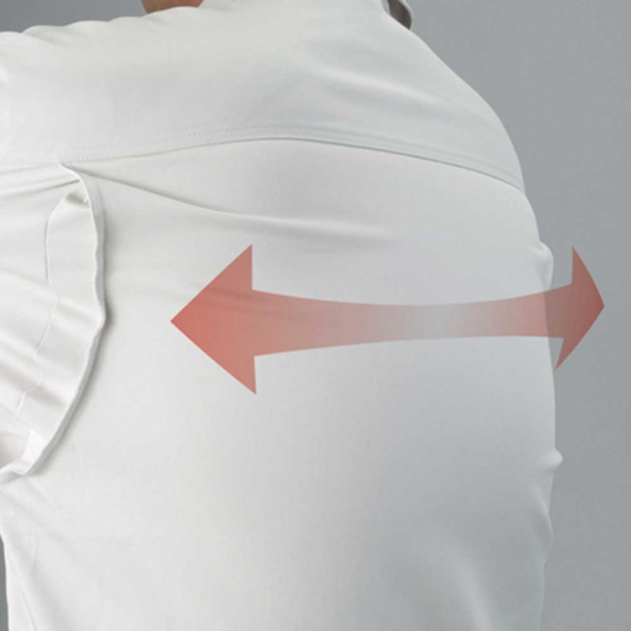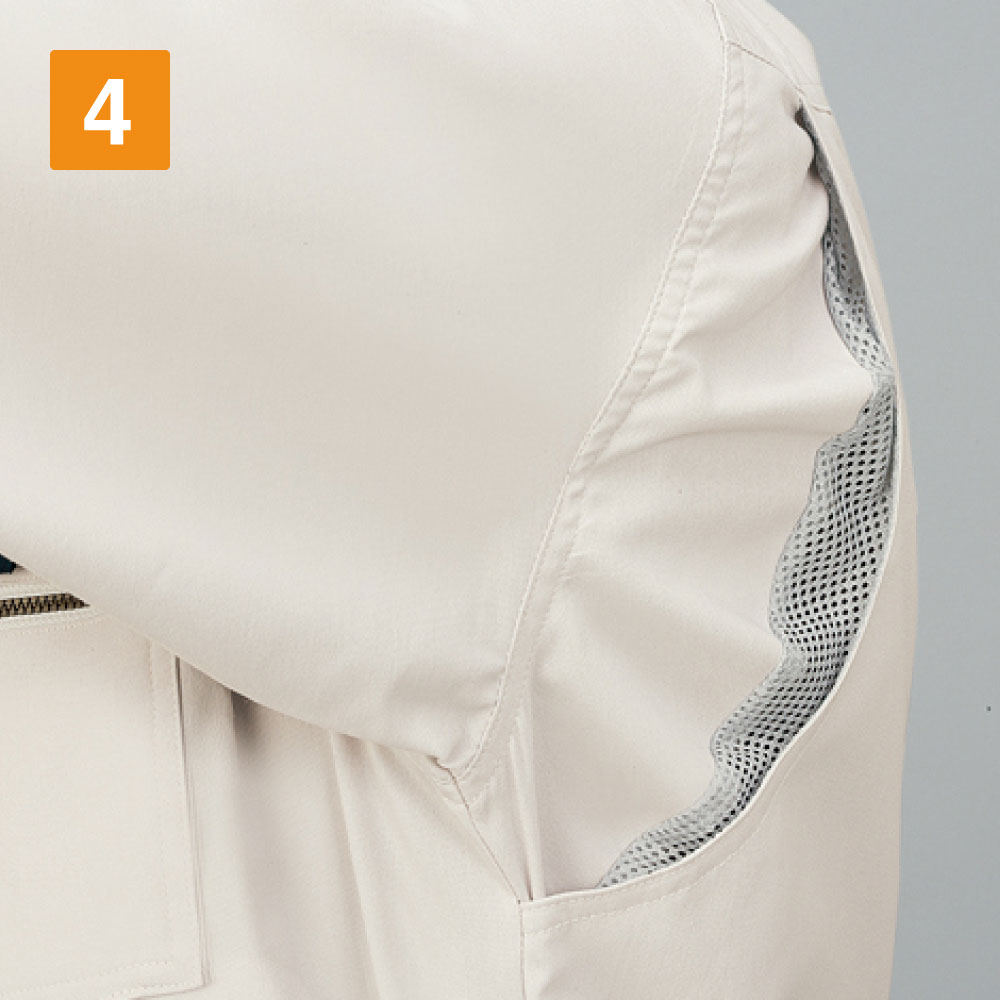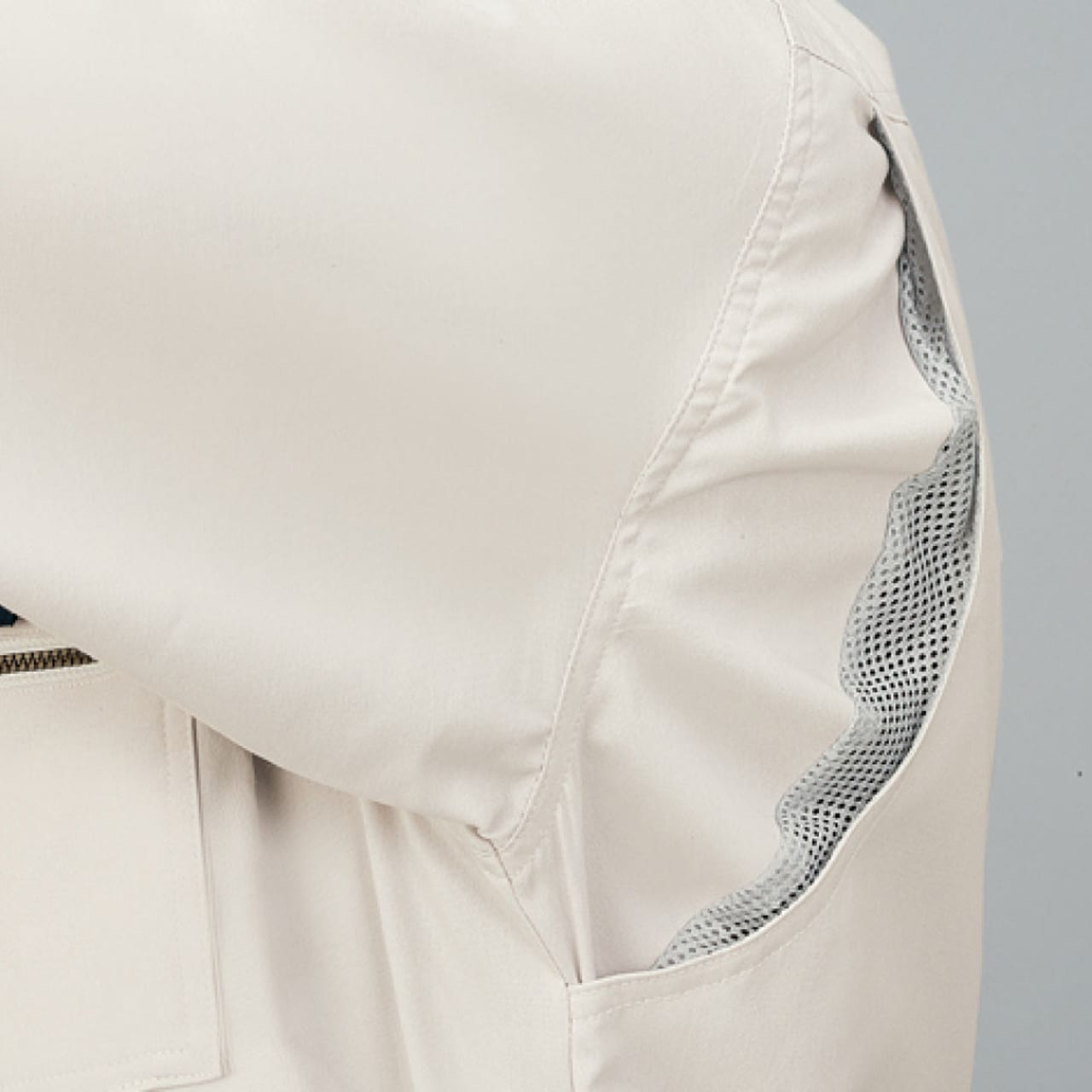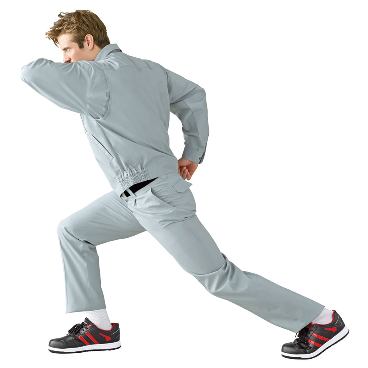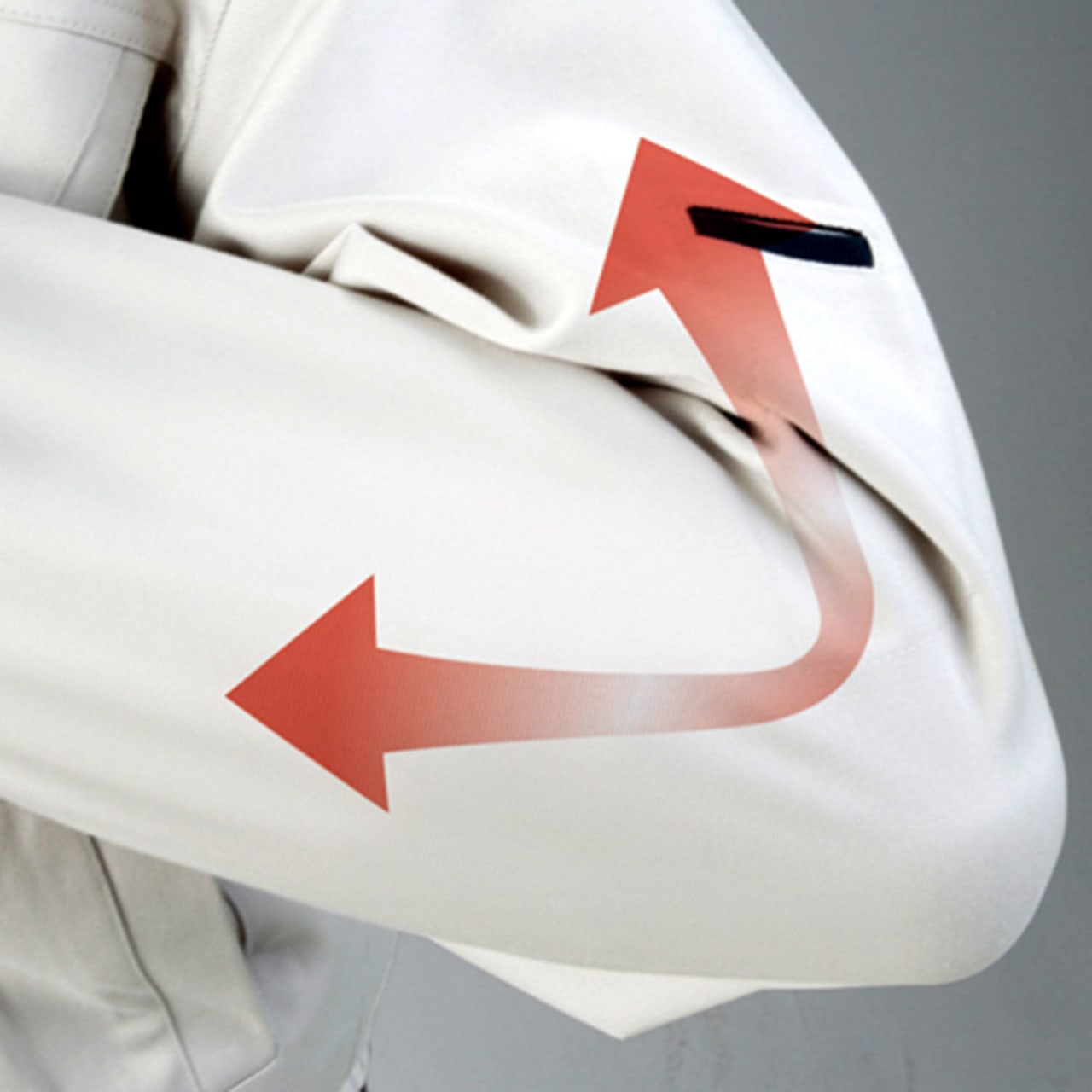 伸縮性が優れているまるごとストレッチ長袖ブルゾンは、体にフィットしやすく、活発な作業時にも快適です。突っ張りが気になる背中、肩、ひじ、腰なども窮屈な感じを抱かずに着用し続けることができます。また、アクションプリーツメッシュにより肩が非常に動かしやすいうえに、背中のメッシュにより激しく動き回っている時でも通気性がよく、汗による不快感を抑えてくれます。キックバック性にも優れ、ポリウレタンのような膝抜けの心配がありません。