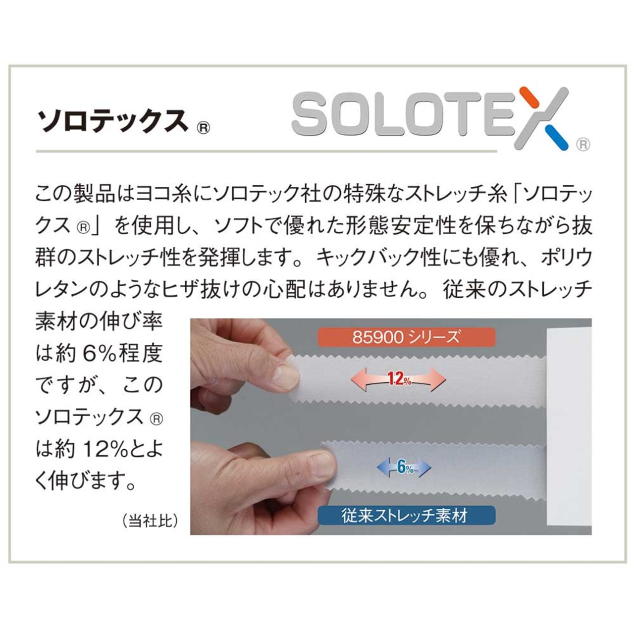 タイトに仕立てても自在に伸縮する「ソロテックス®」素材を使用