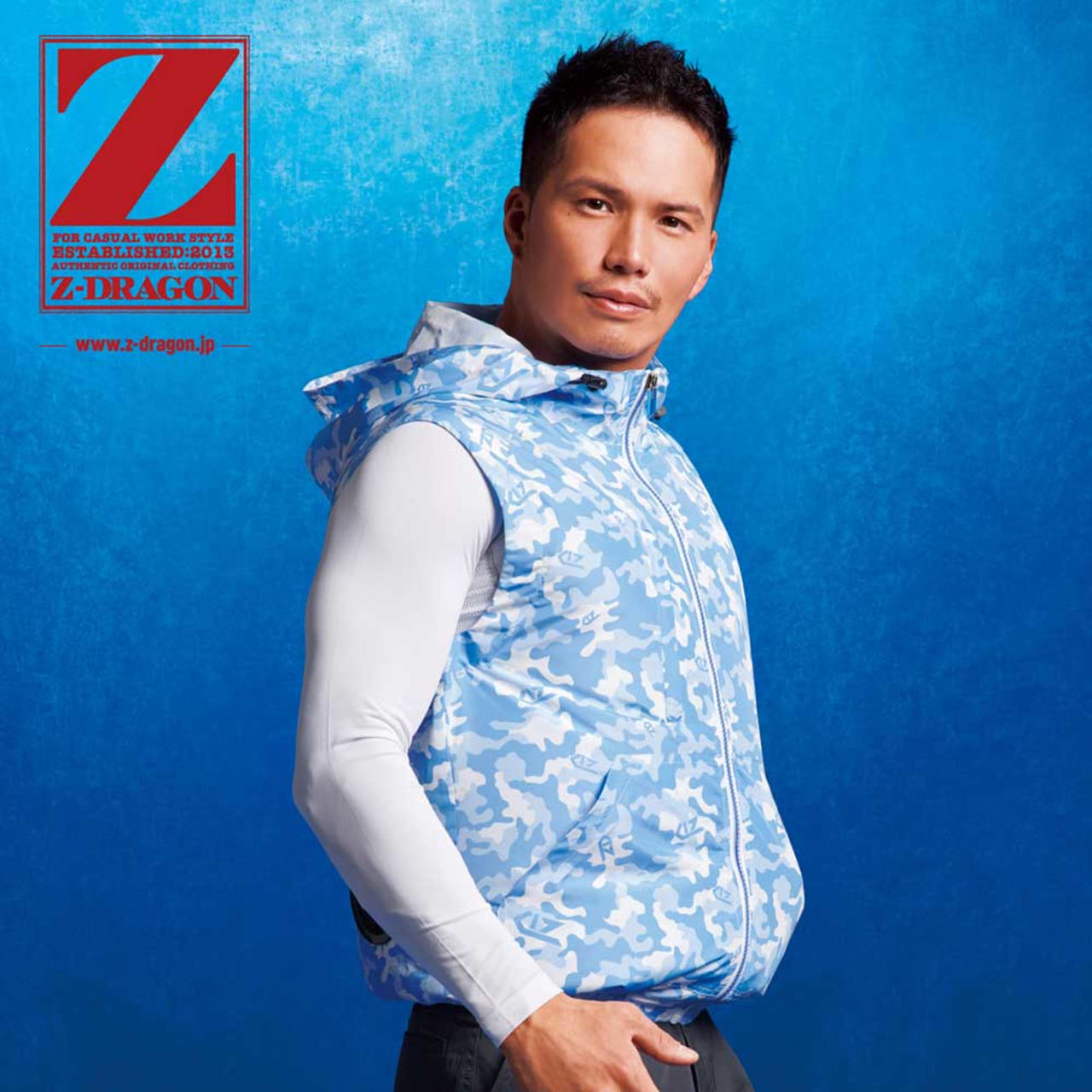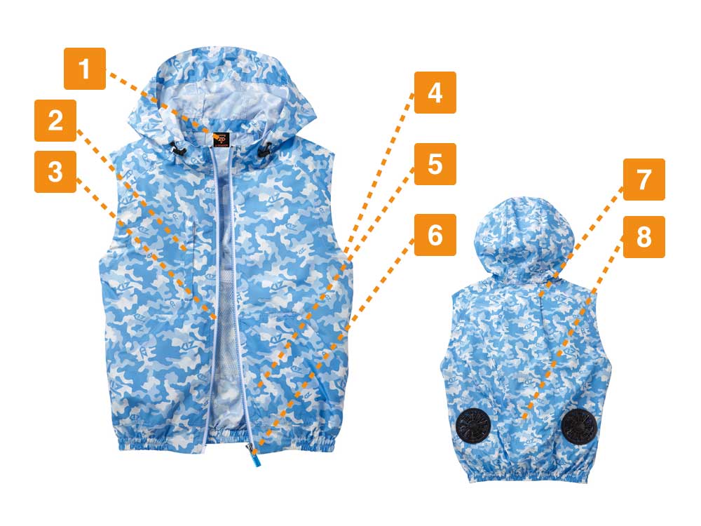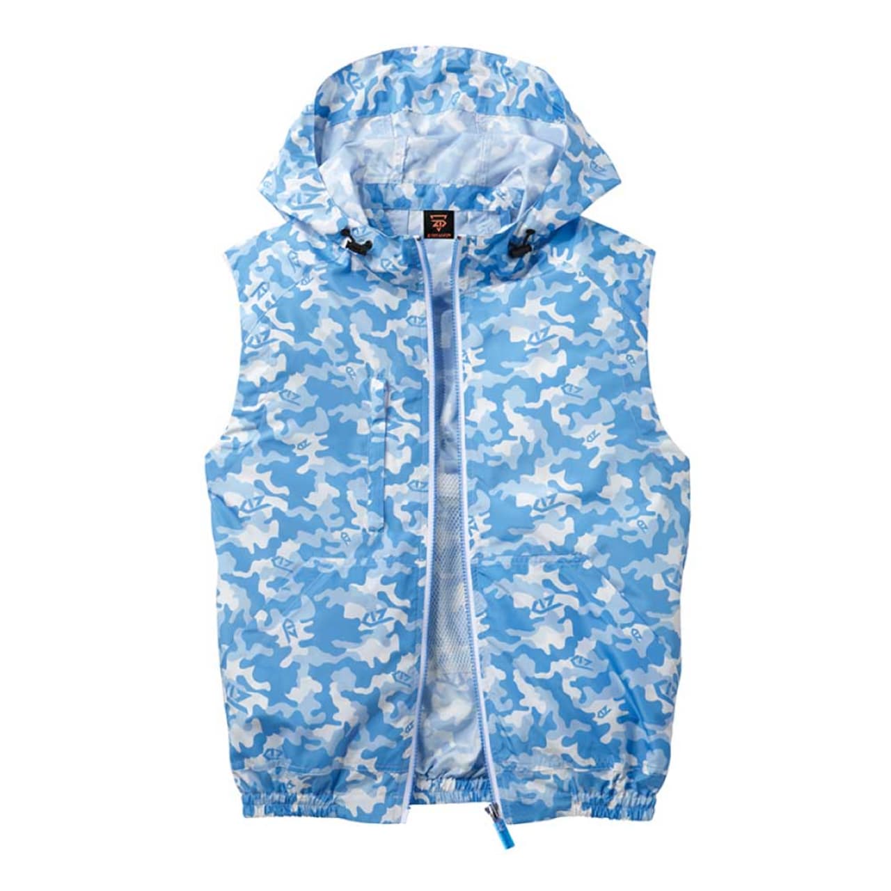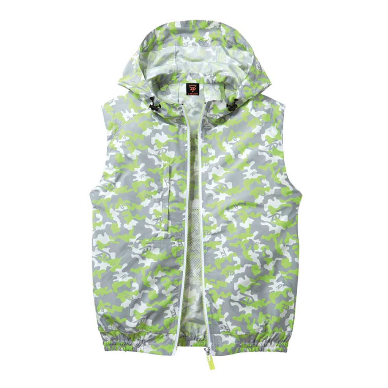 空調服ベスト(フード付き)はベストタイプとなっており、インナーとしても着れることが特徴です。カラーバリエーションはシルバーカモフラ、ブラックカモフラ、ブルーカモフラ、グリーンカモフラ、ピンクカモフラといった幅広いラインナップです。ファンを付ければ涼しくなりますが、保冷材用ポケットも利用することでさらに涼しさアップします。夏の暑さ対策だけでなく、作業効率を上げたい方にもおすすめの一着です。