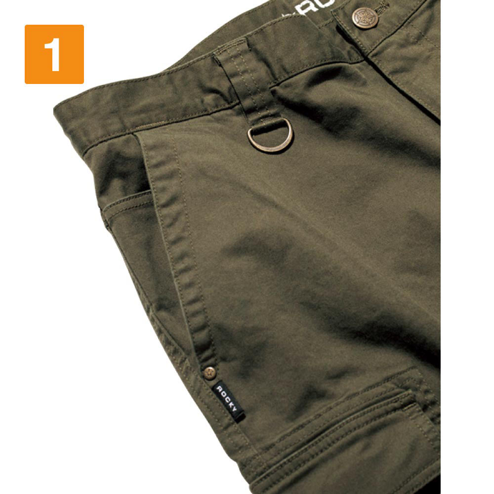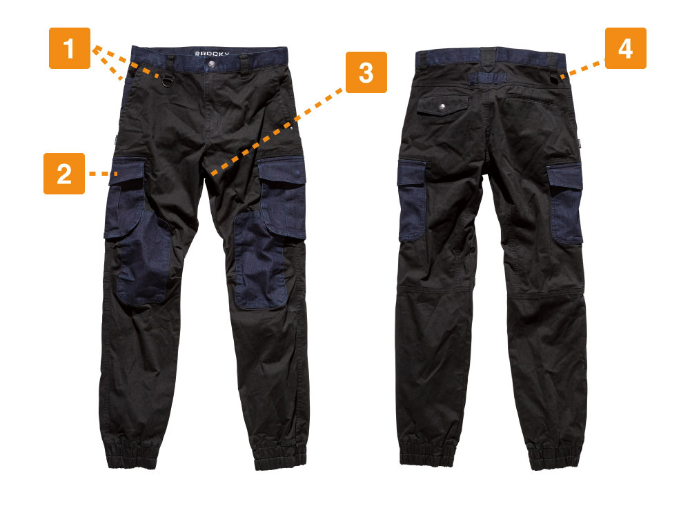 ストレッチツイル生地は適度なツヤと厚みがあり、見た目のよさと丈夫さを両立しています。ピンポイントでデニム生地を織り交ぜることでアメリカンテイストな仕上がりにし、スタイリッシュなシルエットで作業の邪魔にもなりません。ワークウェアのヴィジュアルにもこだわる、意識の高いワーカーから支持されているのはこうした理由です。裾ゴム入りで足元を引き締められ、ブーツや安全靴、スニーカーなどさまざまなシューズとの相性も抜群です。複数のポケットに膝当てなど、機能性とルックスの良さを両立しています。