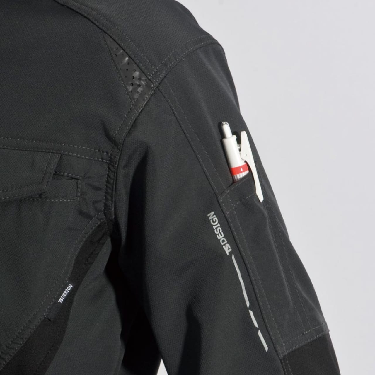 ワイルドなライダースをイメージした高級感のあるしっかりとしたデザインのジャケットです。一見すると重そうなイメージですが、見た目に反してとても軽く、女性にもうれしい男女兼用のユニセックス仕様のアイテムです。SS・Sサイズ展開でレディースシルエットを採用しており、女性でもスタイリッシュにカッコよく着こなすことができるオススメのジャケットです。耐久性、ストレッチ性などの優れた点の他にワークジャケットの裏生地には凹凸加工があり、汗のベタつき感を抑えてくれますので季節を問わず着ることができます。TS DESIGNシリーズのパンツなどと合わせて、コーディネートを楽しんでみてはいかがでしょうか?
