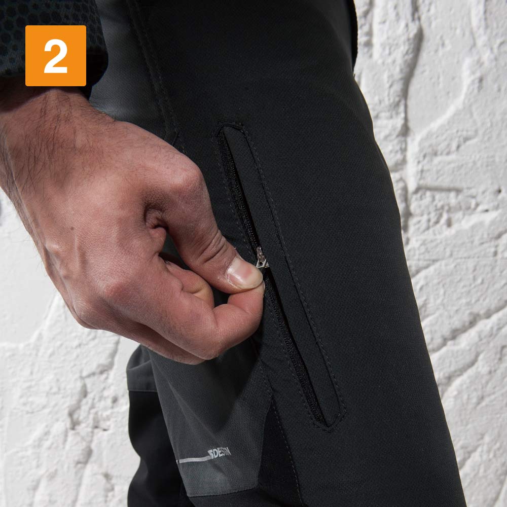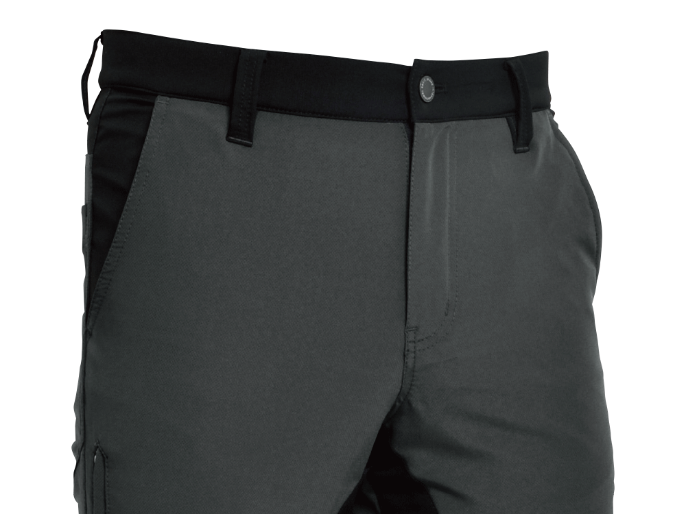 2つのストレッチ素材を組み合わせた、まさにハイブリッドなメンズのショートパンツです。軽い着心地ながら、タフな機能性を兼ね備えており、あらゆる仕事のシーンで活躍することでしょう。ブラックやチャコールといった落ち着いたカラー展開なので、他のアイテムとも合わせやすいものおすすめのポイントのひとつです。また、デザインはシンプルながらも、ファスナーポケットや反射プリントなど安全面に配慮した機能的な一面もあるので、危険な場所での作業などにも最適です。