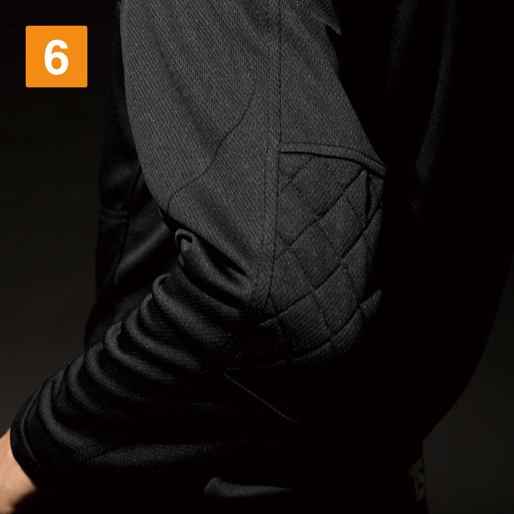 吸汗速乾に優れたドライメッシュ素材を使用し、汗をかいてもサラッとした着心地でオールシーズン快適に過ごすことができます。また動きやすさを追求した、伸縮性のあるニット素材は、身体の動きに合わせてフィットします。丈も長くパンツなどにインしても出にくい仕様ですので、作業時も背中側が気になりません。荷物運びの際に負担がかかる肩、肘部分には刺し子でつくられた補強加工で、タフな動きもしっかりサポートしてくれます。左袖のスリーブポケットは、ストレッチ素材で深さがあり、マルチな収納を重視したデザインで作られたワークニットロングシャツです。