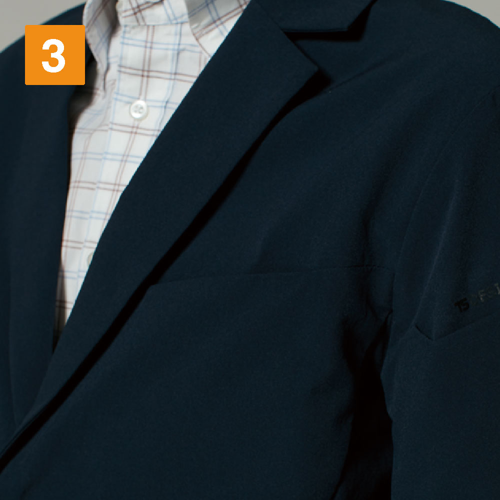 TS 4D ステルスメンズジャケットの最大のポイントは、まず、なんといっても動きやすい伸縮性に富んだ着心地だと言えるでしょう。新技術・4D ストレッチャーにより、どんな動きにもフィットするジャケットは、業務や作業現場を選びません。複雑な動きにも対応できるため、従来のジャケットにはない快適な仕事ができるはずです。また、小松マテーレが開発したマーバスLは、汗をすばやく吸収、乾かしてくれるため、いつでも爽やかに着こなすことが可能です。シワになりにくいため、着回しに気を使う必要もなく、毎日の仕事着としても最適な一着です。