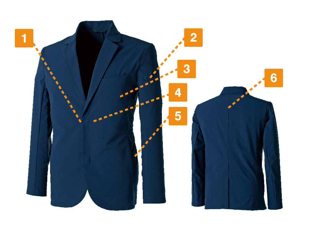 快適な着こなしを実現した4つの先端技術素材を採用