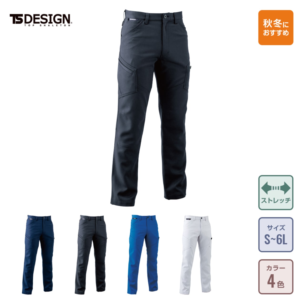 シンプルスタイルのパンツのため、着用する現場を選びません。派手さがなく、人目も引かないためワークパンツとして最適なヴィジュアルです。現場によっては派手なデザインのワークウェアは敬遠されるため、さまざまな現場を飛び回る派遣スタッフの方にもおすすめです。また、ポリエステルをメインの素材としているため、耐久性に優れているのも特徴的なポイント。洗濯を繰り返しても生地が傷みにくく、長持ちします。メンテナンスが容易なのも多くの方に選ばれている理由の一つです。