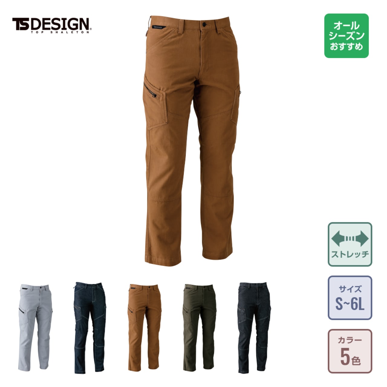 藤和の5114メンズカーゴパンツは、形態安定性に優れています。何度洗濯をしてもしわやヨレが起こりにくいパンツに仕上がっています。長く使用できるので、コスパの面で優れた商品です。コストカットを重視している経営者であれば、この長持ちするカーゴパンツを作業着に取り入れてみてはいかがでしょうか?ネイビーとブラックはストレッチ性に優れています。つまり引き裂きに対する耐性に優れています。両足をかなり大きく広げたとしても破れにくいので、ダイナミックな動きの作業を伴う現場向きです。