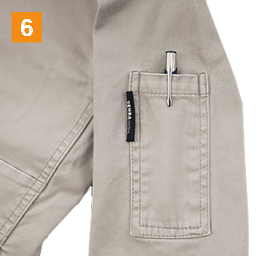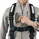 フルハーネス着用時の動きやすさと作業着としてのかっこよさを両立したデザイン。各所に立体裁断を取り入れ、腕の動作がどこまでもスムーズに。ハーネスに邪魔されず物の出し入れができる大容量ポケットに、天候の崩れにも即対応可能なフードを内蔵。作業のどんな瞬間にもフィットするのがポイントです。また、無駄のない細身の設計で、機能性にこだわりながらもスタイリッシュな見た目を実現しています。細身でもストレッチ性に優れた生地が動きを妨げません。