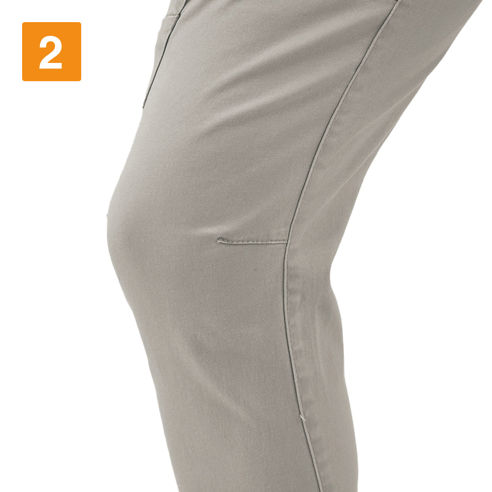細身のシルエットながら脚の動作をまったく妨げない秘密は立体裁断とストレッチ素材にあり!おしゃれとはいっても現場作業用に開発されたジョガーパンツ。「動作」へのアシスト力にとても優れています。繊細な立体裁断がしっかり膝の形状に沿うので、曲げた時の突っ張り感を最小限に。さらに、本体は全てが高ストレッチ素材でできているため、しゃがむ・開脚などの大きい動きもストレスなく行っていただけます。動きの制限がないことで、現場での安全性もアップする一本です。