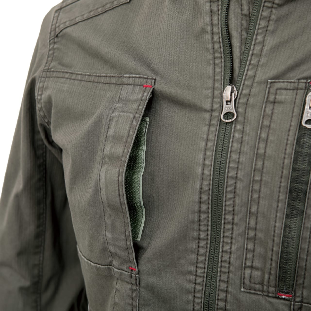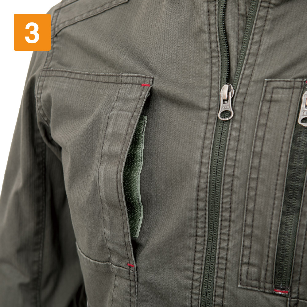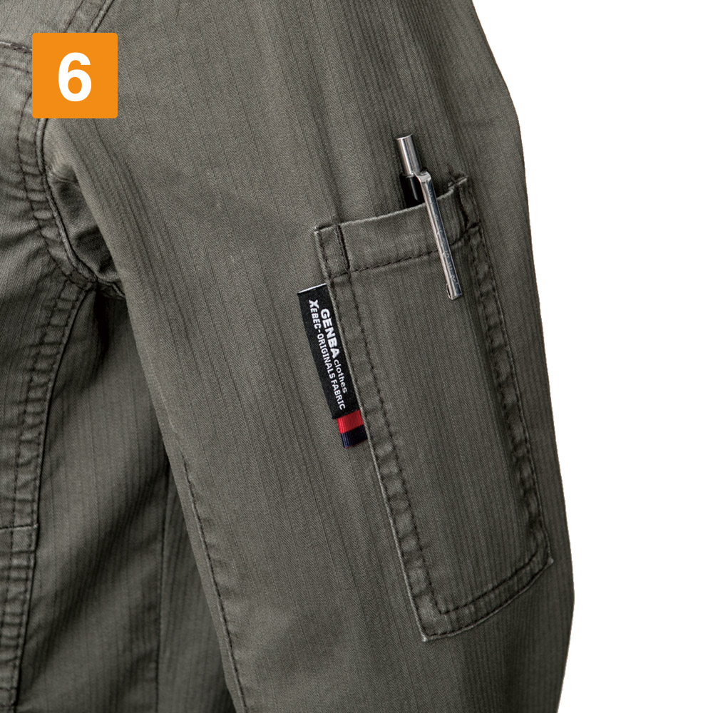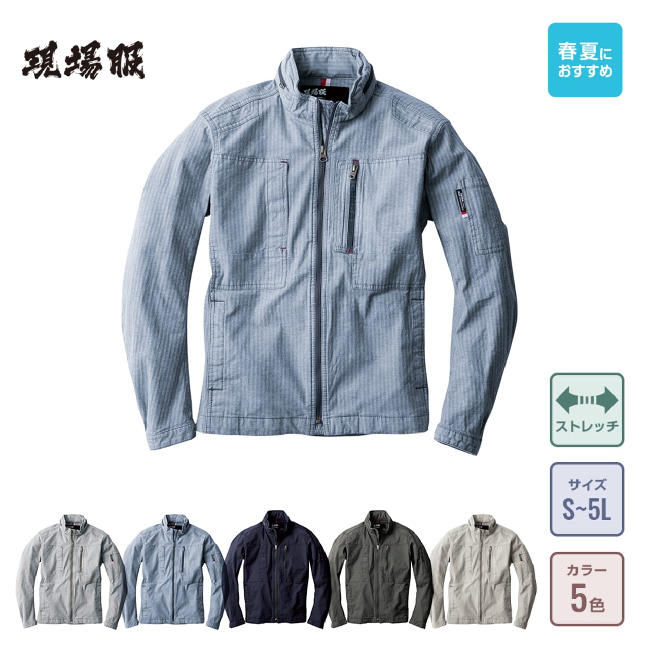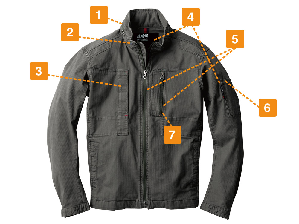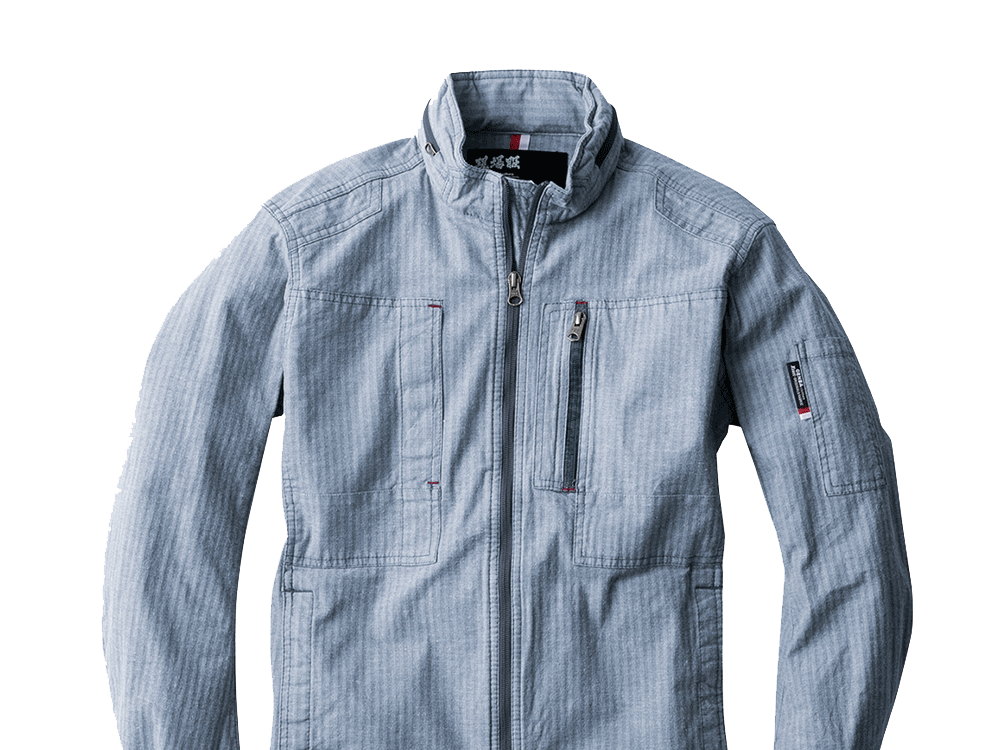 織柄がとても印象的!夏らしさを感じる生地感にいままでの作業着にはないおしゃれさがあります。細身シルエットが身体に適度に寄り添うデザインで、薄手でジャケット感覚で着られて見た目とってもスマートです!さらに、動きやすさにもとことん配慮されています。全体にストレッチ素材を採用しているため、身体のひねりや腕の曲げ伸ばしがラクラク!現場で求められるさまざまな体制にも追従してくれるので、安全性もばっちりです!