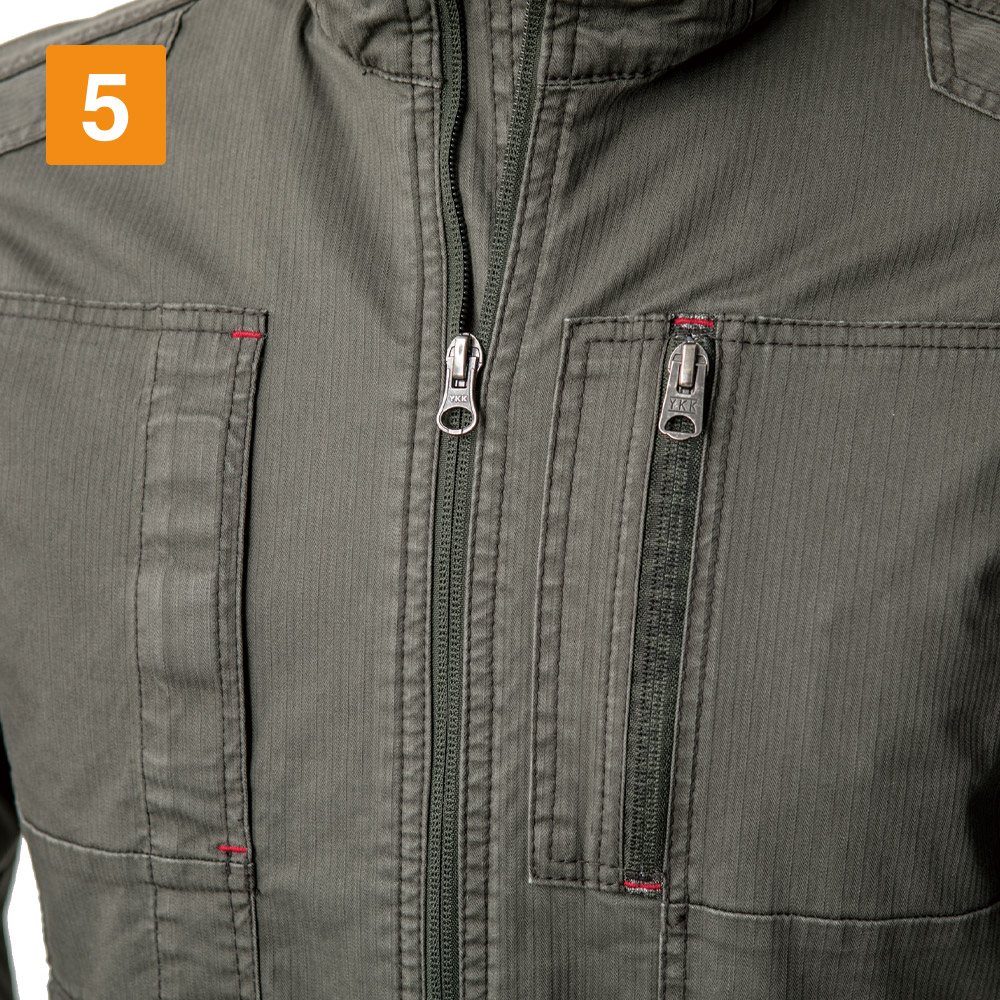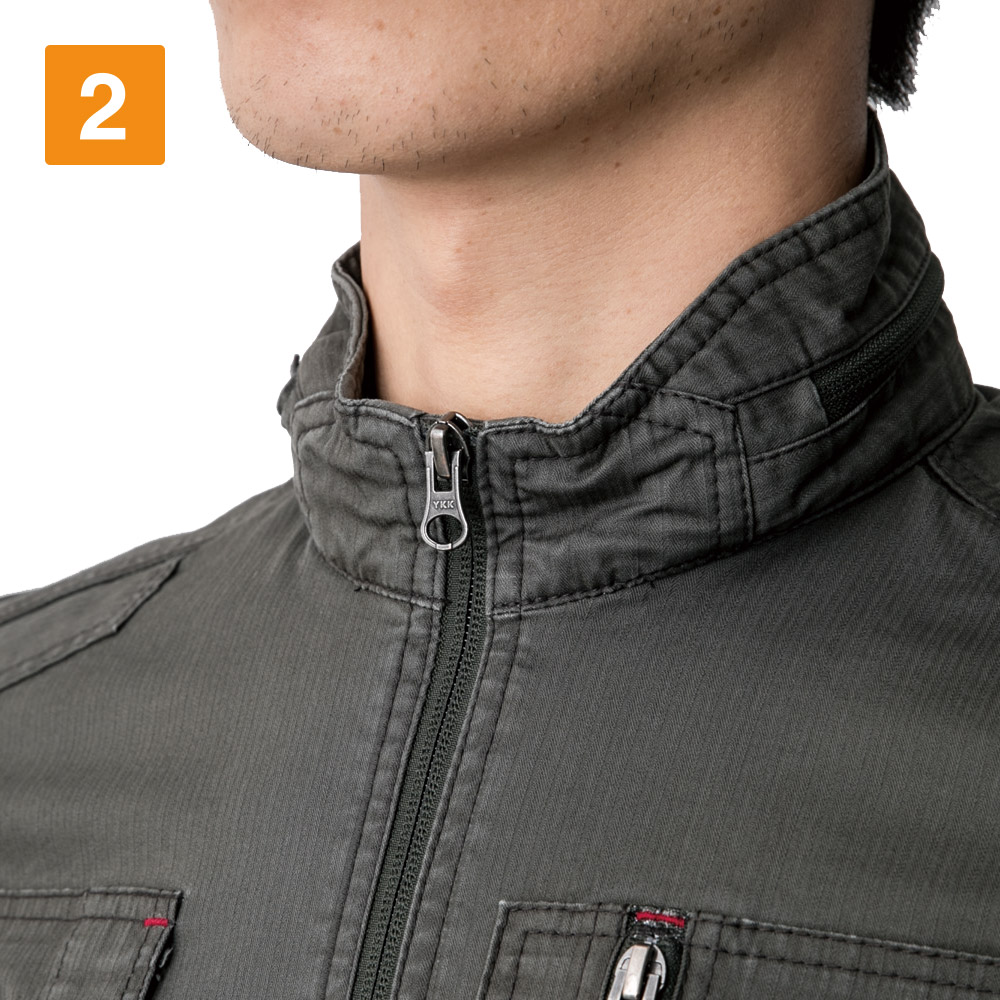 織柄が素敵なヘリンボーン生地が魅力的なブルゾン。そのストライプのような柄がスマートなルックスをより強調してくれます。ポイントは夏らしいその生地感。素材に綿を97%配合した肌触りのよく着心地のいい生地を採用。さらに洗い加工が施されているため、綿ならではの優しい着心地をより体感いただけます。生地のストレッチ性もとても高く、生地だけでも何役もこなしてくれる、春夏シーズン手放せない作業着となること間違いなしです。