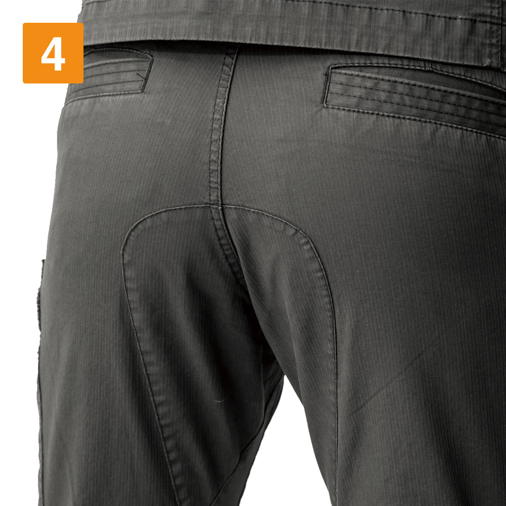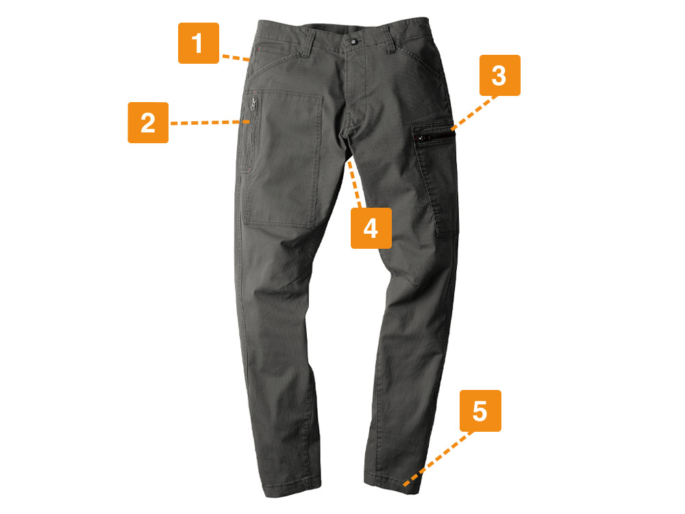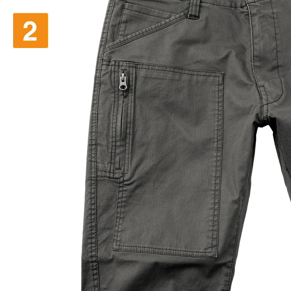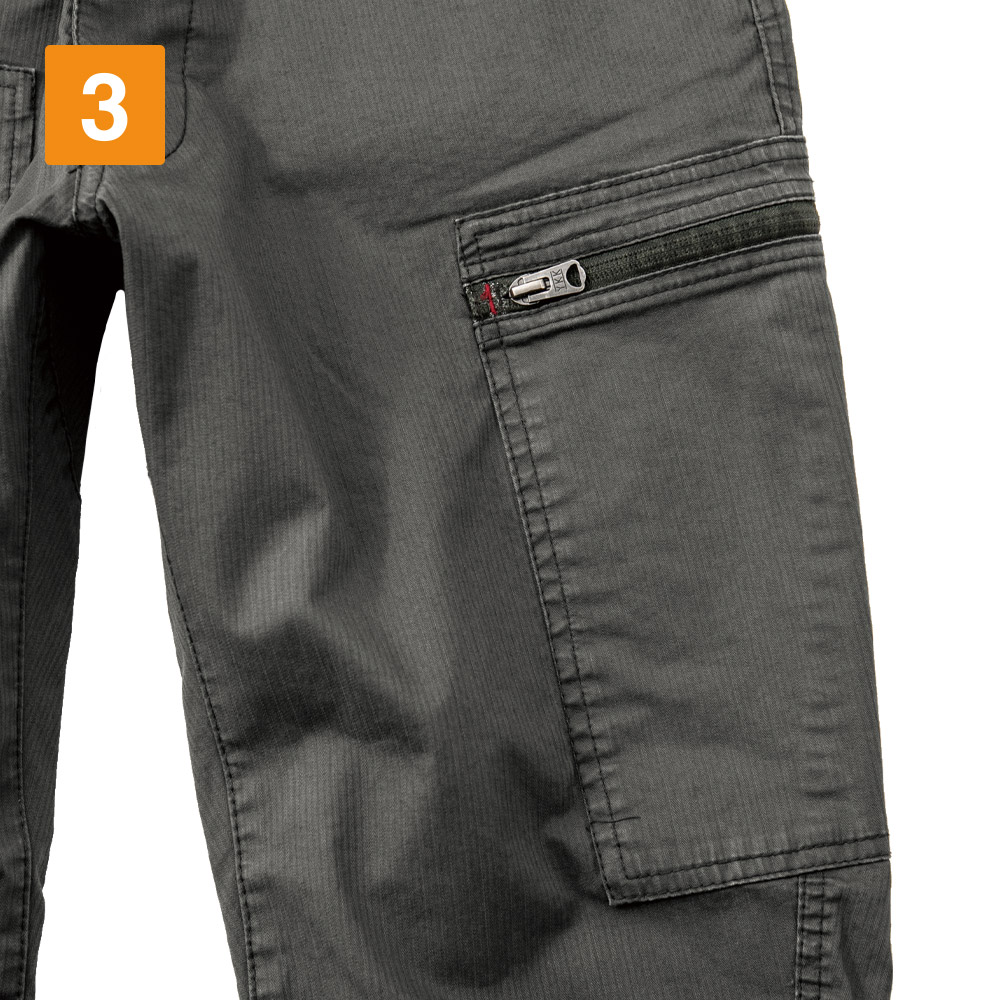 細身なので、本当に動きやすいのかな?と少し心配になりましたが、実際履いてみると、心配を一気に吹き飛ばす快適さでした。着用してのラジオ体操やストレッチなど、足を大きく開いたりしゃがむ運動をしてみましたが、全く違和感なく行えます。柔らかく生地がストレッチしてくれるので、とっさの動きや、現場で求められる様々な動きにもしっかり対応してくれました。かっこいいだけじゃない、安全性を考え抜かれた現場のためのパンツという印象です。