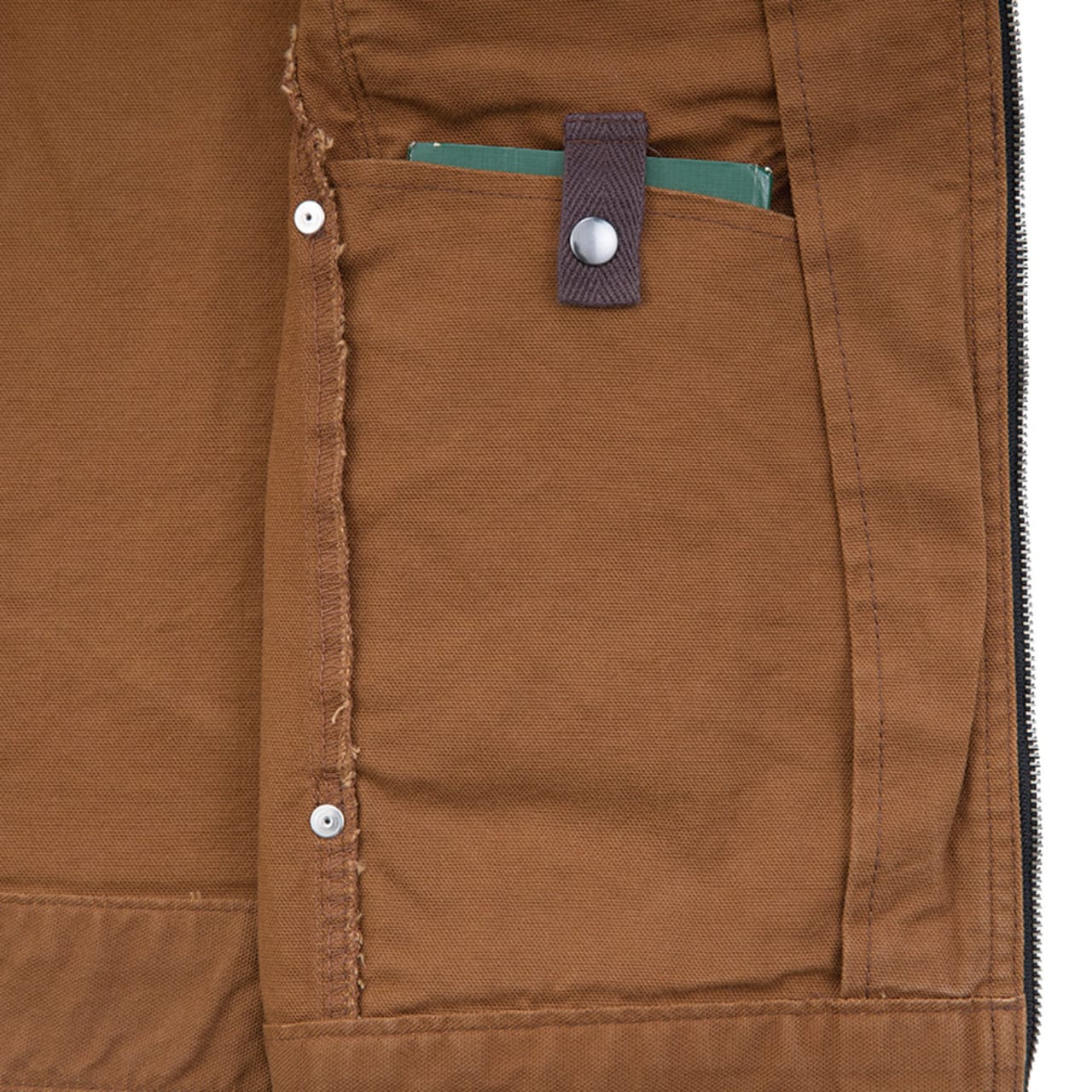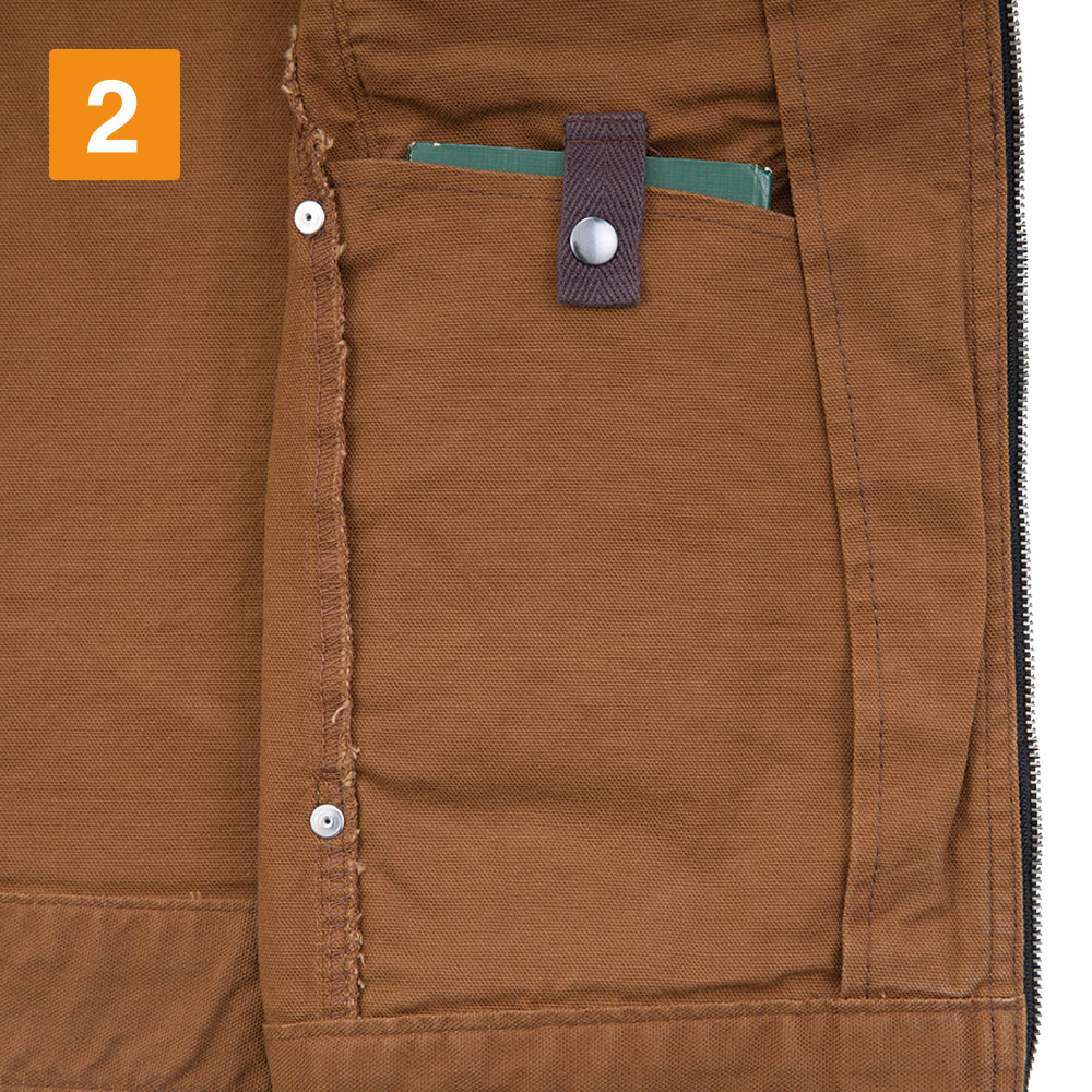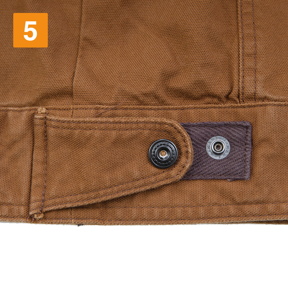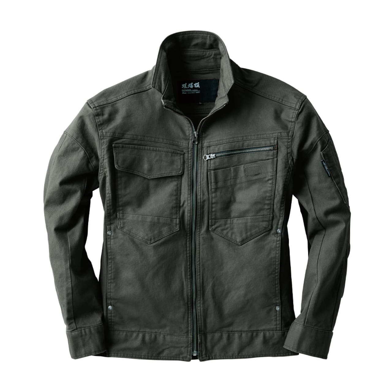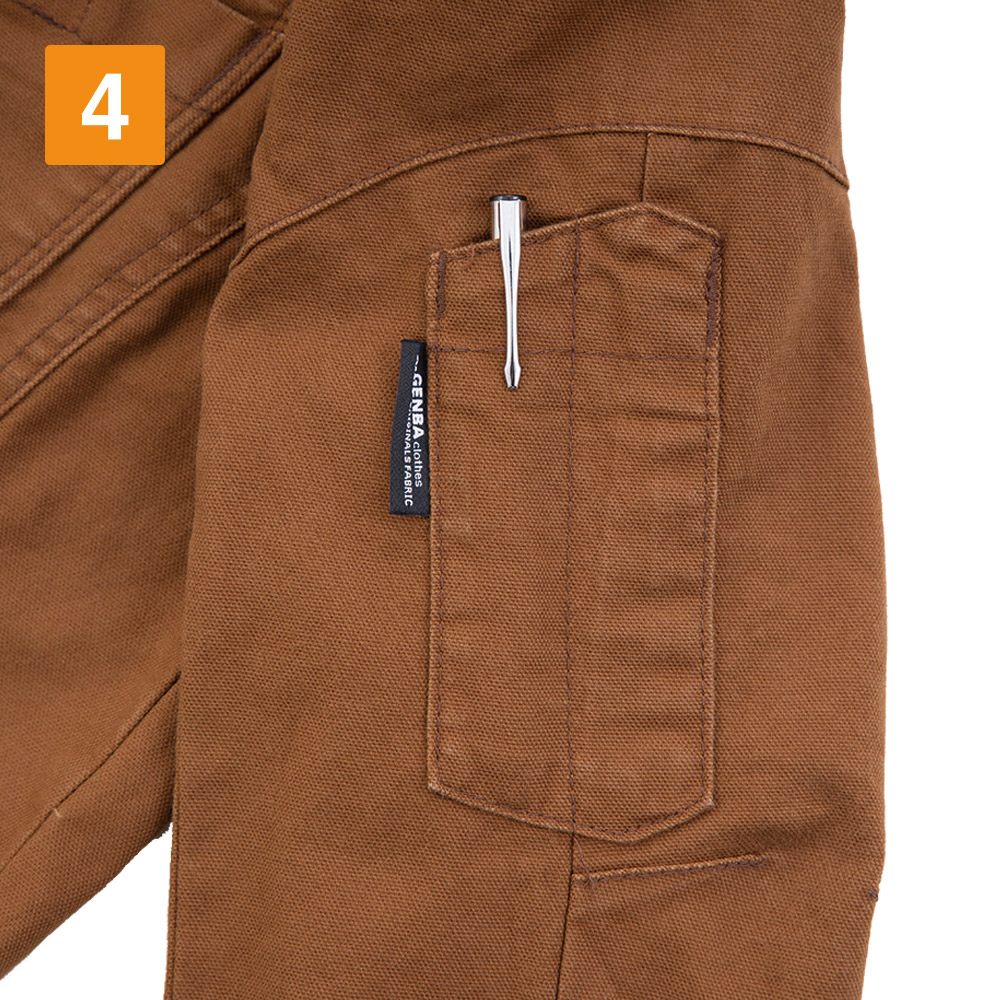 本体素材に採用されているのは高いストレッチ性のある生地、ストレッチオックス。綿を主体とした生地でとても肌触りが良く、厚手ながらも本当によくストレッチが効くのが特長です。現場で求められる急な動きや大きな動きにも追従し、作業性を高めます。肘部分にはタックがとられていることで、肘の曲げ伸ばしもとてもスムーズ。ストレッチ生地によって肘を曲げた時の背中の突っ張り感も少なく、いつでも快適な動きをアシストしてくれる一着です。