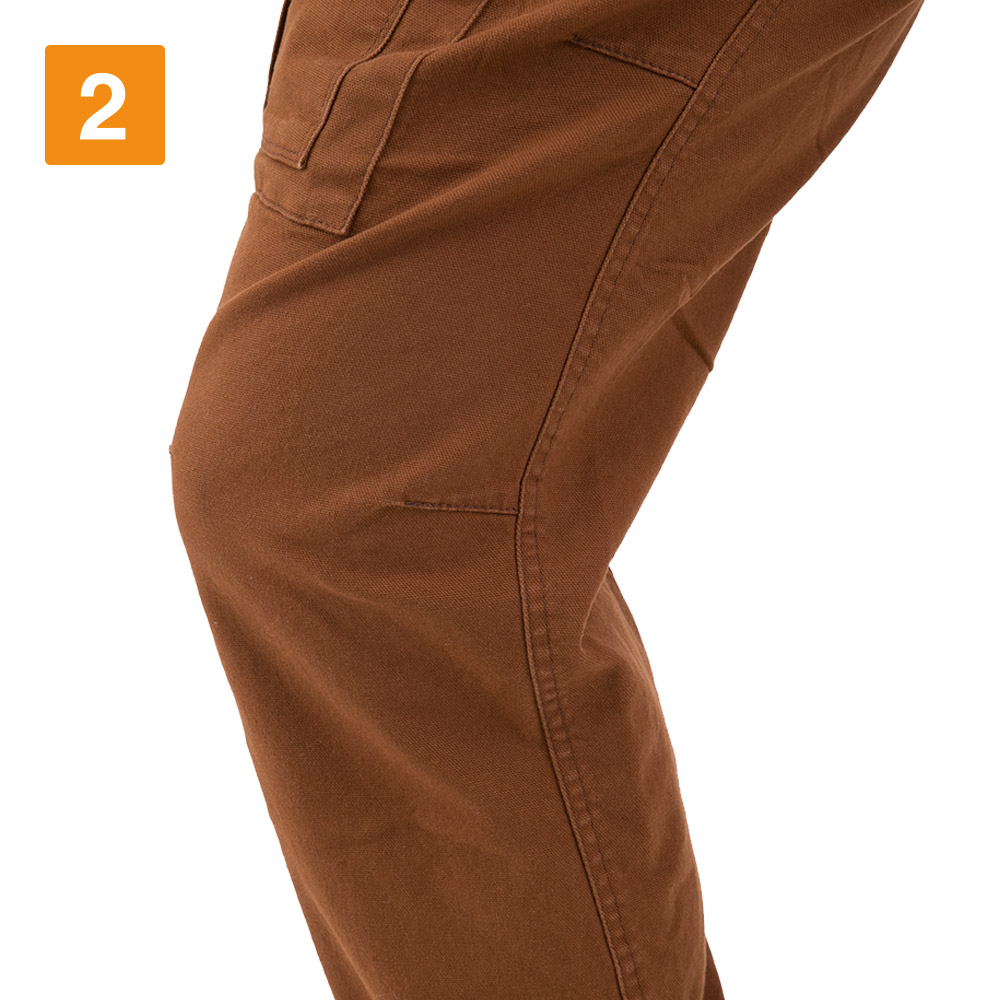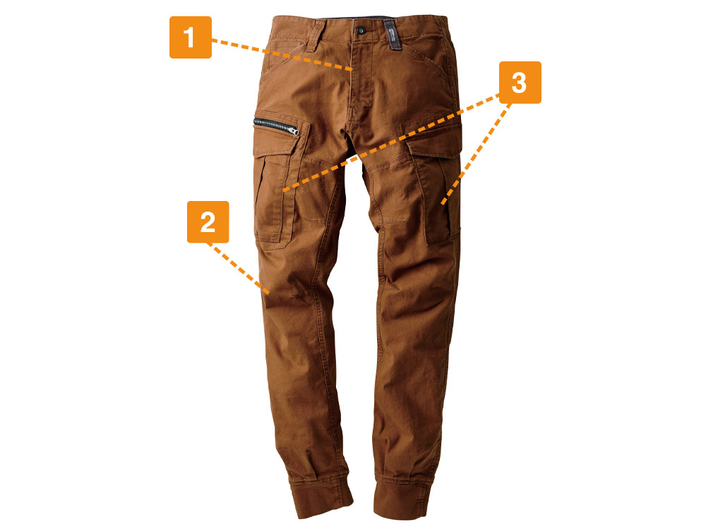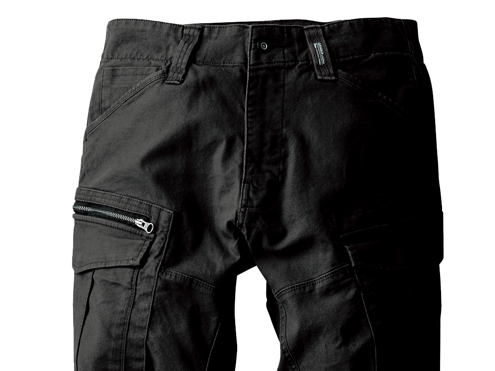 カーゴパンツの良さはそのままに、裾部分に配置されたリブが見た目、機能性をグンと格上げ。足首まわりがスッキリすることで、シルエットが一段とかっこよくなり、作業している姿をイメージアップしてくれます。また、長靴やブーツなどの着用時にはブーツインがとてもスムーズ。さらに裾がつまっていて引っかかりにくいので、作業時の安全性も確保してくれます。生地のストレッチ性能とあわせて、着用時のストレスをどこまでも低減するデザインです。
