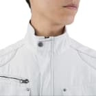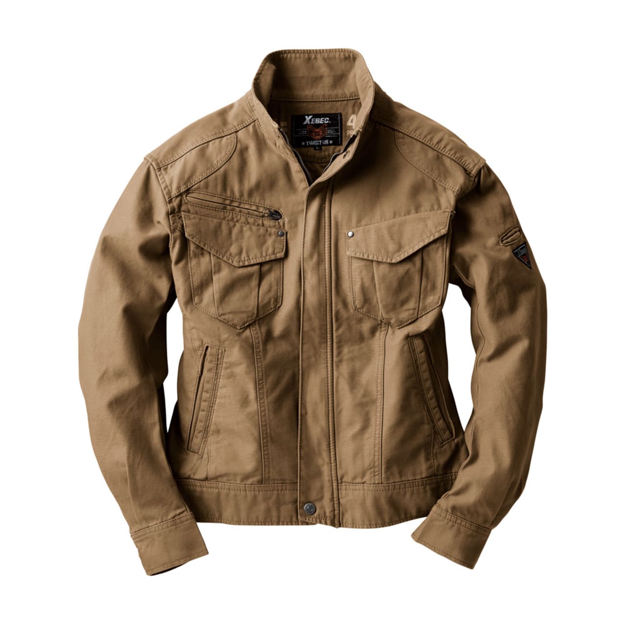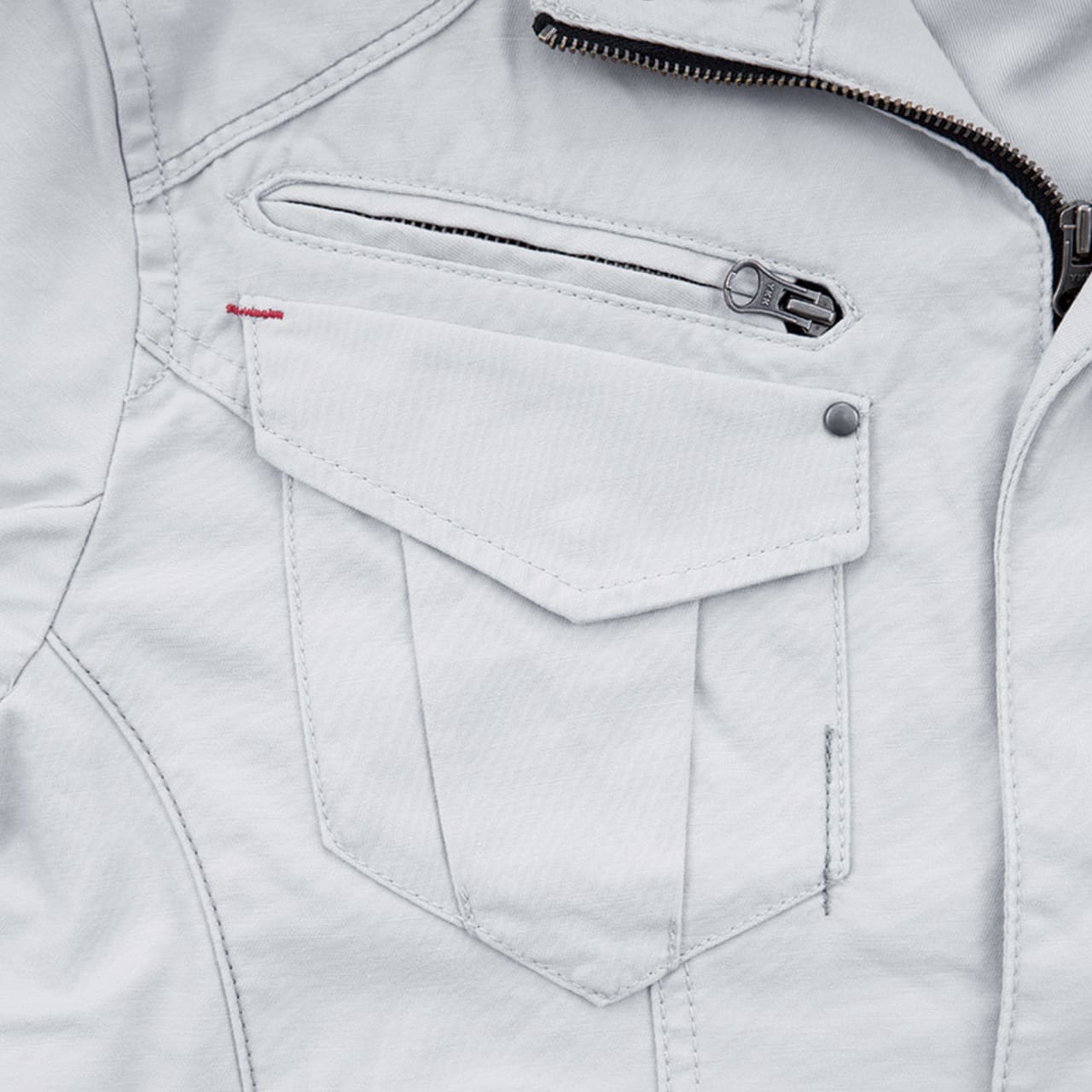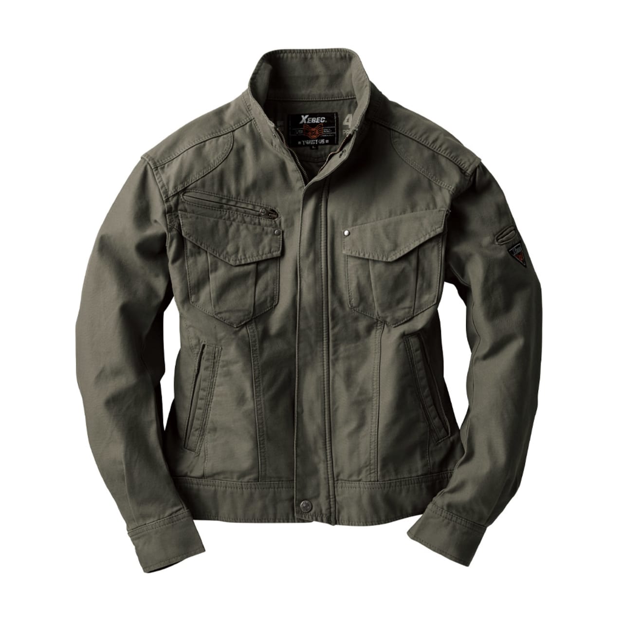 実際の着姿を360度どこから見ても、とてもかっこいいショート丈。他にはないかっこよさがあります。本体にはそのかっこよさをより引き立てるアクセントがたくさん。肩や前面に入った布地の切替と渋い金属のドットボタンが、ブルゾンの見た目にリズムを与えてくれます。さらに襟元やカン留めの赤のステッチ、内側首元と袖につけられたレトロなジーベックロゴが雰囲気よく、生地との相性も抜群です。動きやすいのにまるでおしゃれ着のようで、どなたにもかっこよく着ていただけます。
