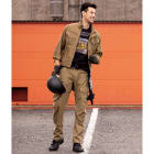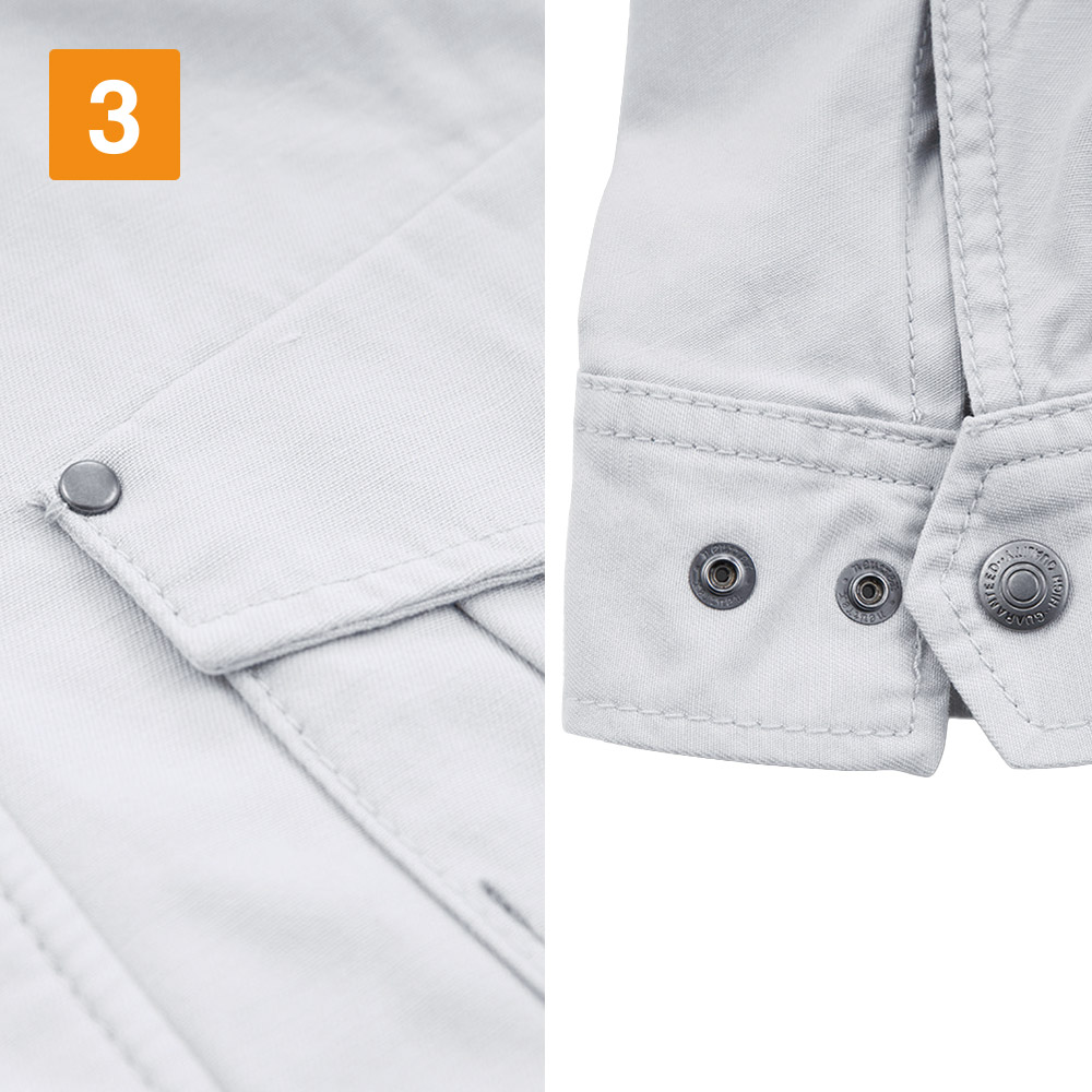 ポイントは「6cm短い着丈」。他のブルゾンよりわずかに短い着丈が、高所での動作をスムーズに。作業性をアップしてくれます。本体の生地は綿100%で肌触りがよく、着るほどにカジュアルなおしゃれさがアップします。やわらかく動きやすくなっていくので、着用を通して自分だけの一着を育てる感覚があるのも楽しいポイント。さらに、本製品ではあらかじめウォッシュド加工を施しており、はじめから綿のこなれた着心地をお楽しみいただけます。