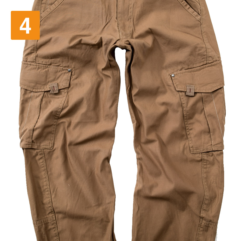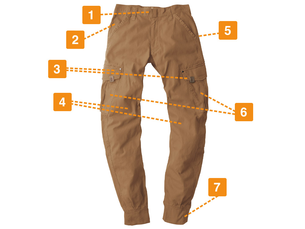 綿素材でも動きやすさに妥協しない、機動性に優れたカーゴ