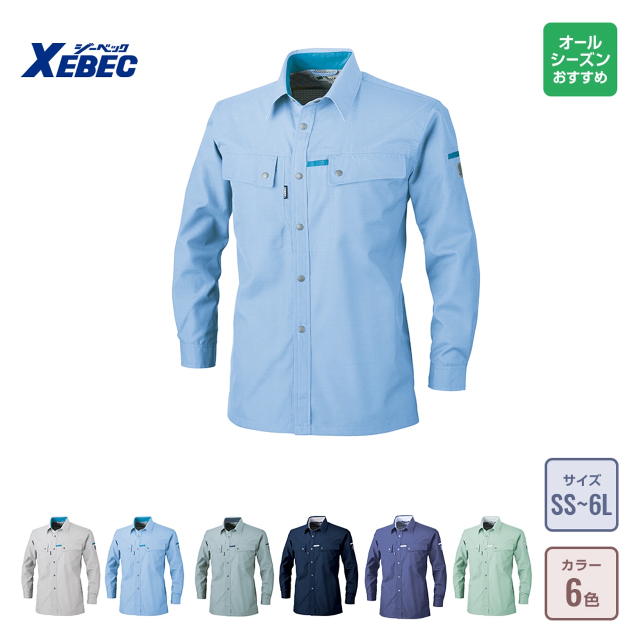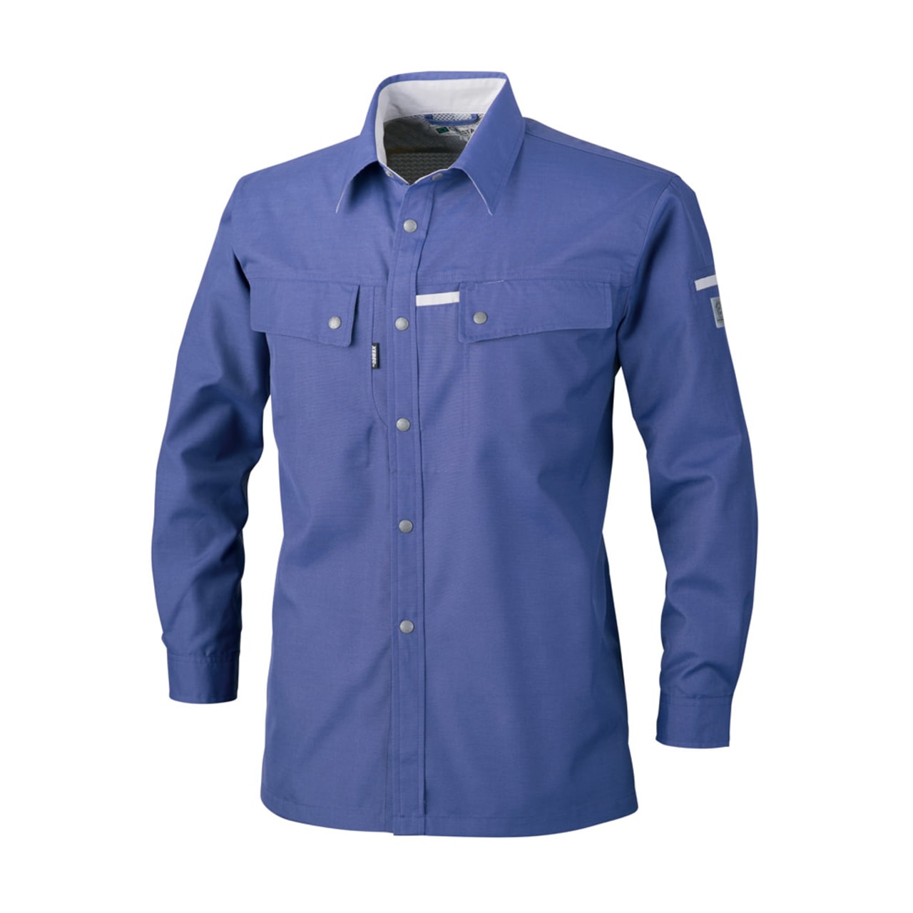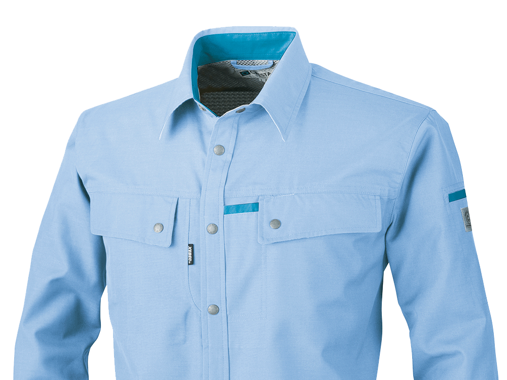 吸汗性と速乾性をもつ高機能生地を採用。夏場も快適にお仕事できる、涼やかさを備えたシャツに仕上がっています。爽やかなブルーを基調としたカラー展開で、クリーンな組織イメージの演出にもおすすめの商品です。また、サイズ展開がSS~6Lと豊富なので、大勢での着用でも男女問わず、一人ひとりの体型にあった一着をお届けできるのもポイント。収納面では両胸のポケットとペンポケットを有し、シャツ単体でも充分な収納力を発揮してくれます。