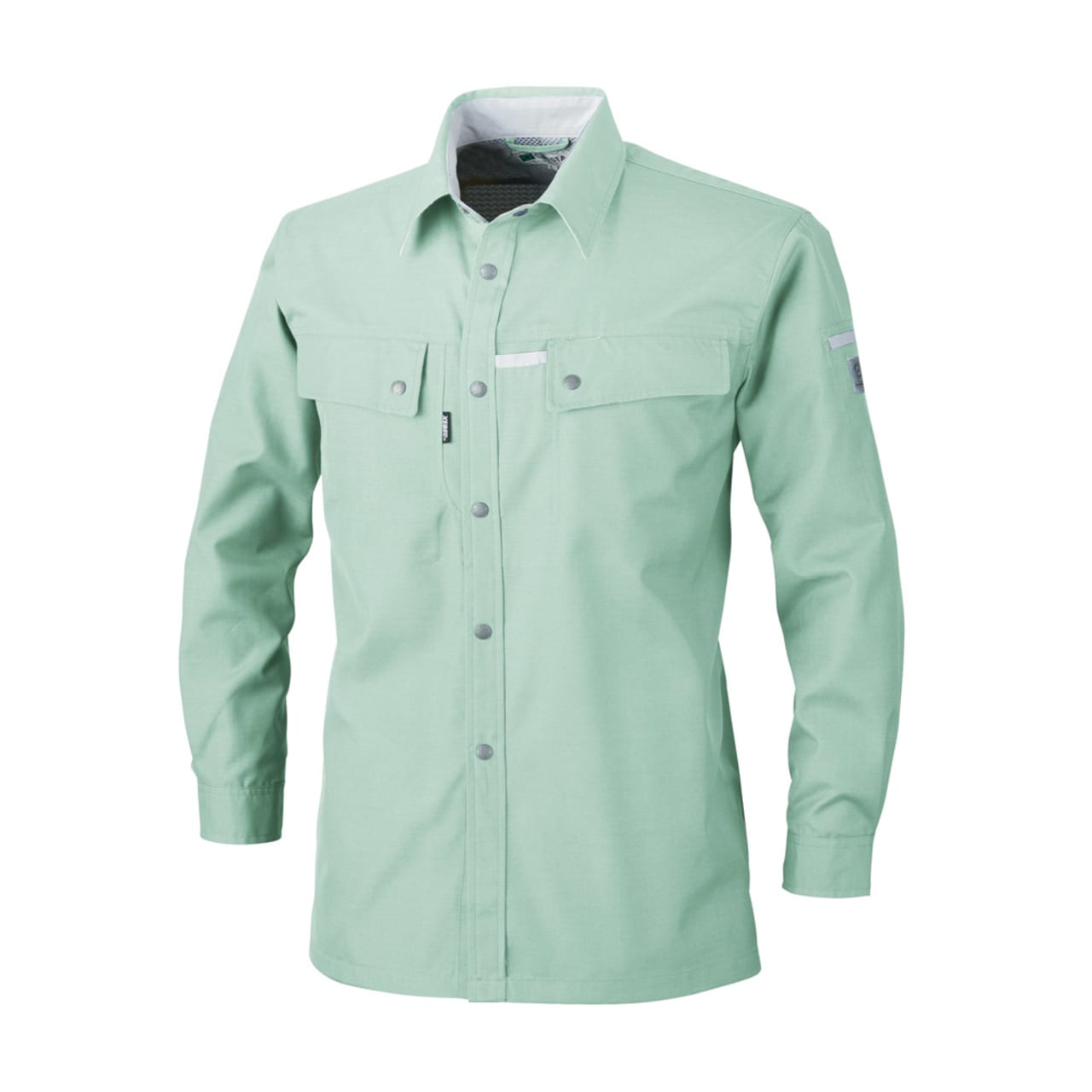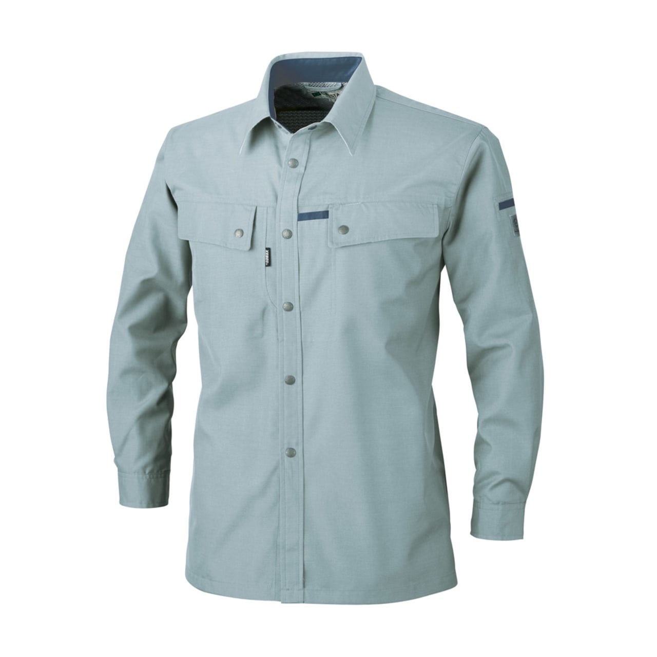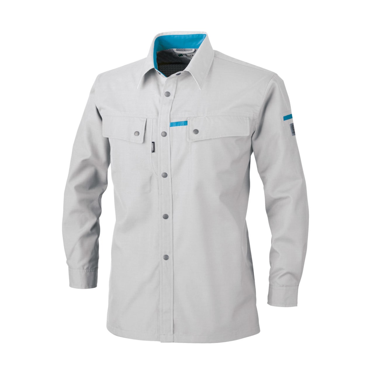 吸汗性と速乾性をもつ高機能生地を採用。夏場も快適にお仕事できる、涼やかさを備えたシャツに仕上がっています。爽やかなブルーを基調としたカラー展開で、クリーンな組織イメージの演出にもおすすめの商品です。また、サイズ展開がSS~6Lと豊富なので、大勢での着用でも男女問わず、一人ひとりの体型にあった一着をお届けできるのもポイント。収納面では両胸のポケットとペンポケットを有し、シャツ単体でも充分な収納力を発揮してくれます。