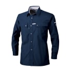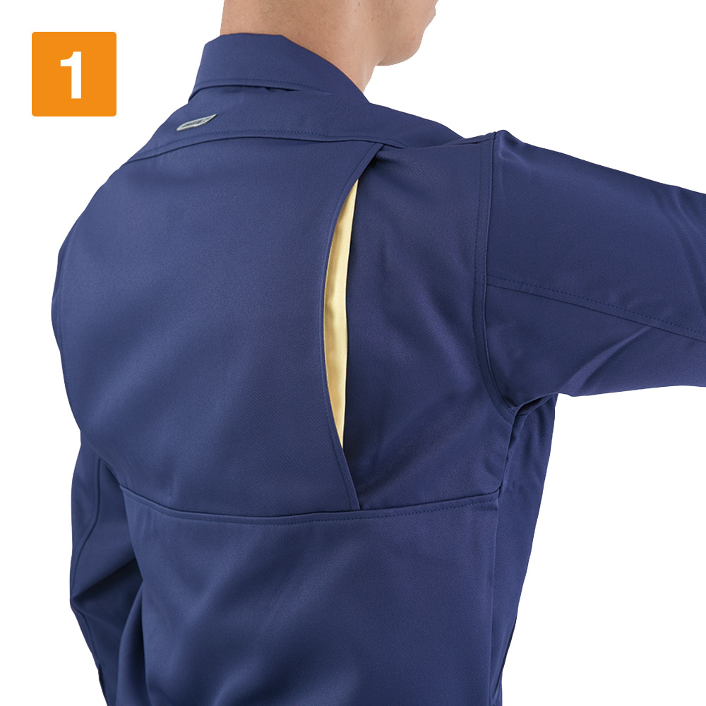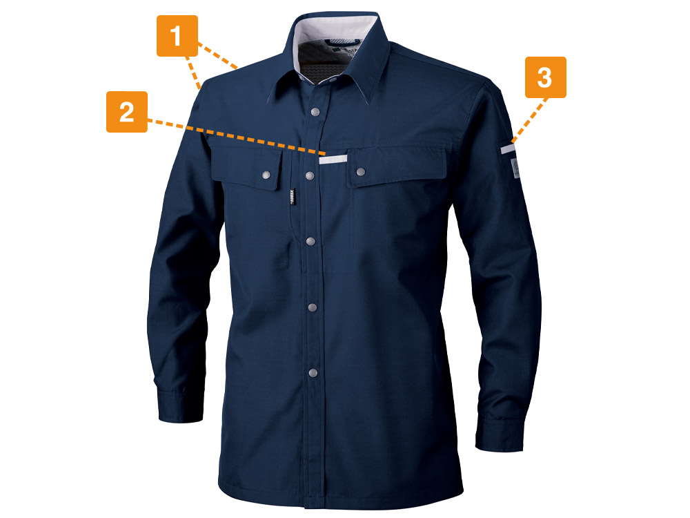 吸汗性と速乾性がポイントなだけあって、さらりとした着心地が気持ちいいワークシャツです。実際に着てみると、軽い着用感がストレスを感じさせません。さらに背中のノーフォーク仕様で、身体のひねりや腕を伸ばす動きなど、現場での様々な動きをしっかりアシストしてくれます。アクセントカラーのポケットに遊び心が感じられ、単調な見た目にならないのもポイント。毎日着る作業シャツとして、着心地・見た目ともに本当におすすめできます。