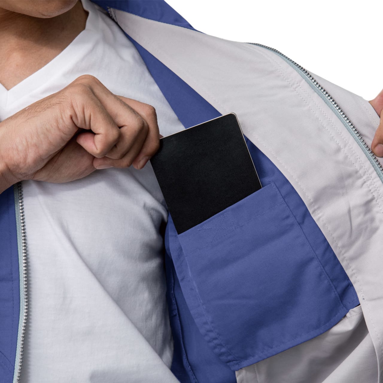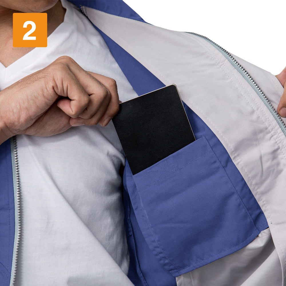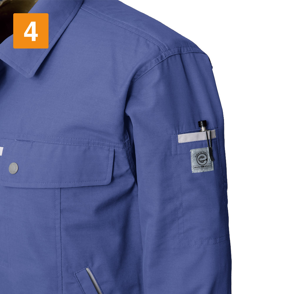 夏らしい着心地と機能性を備えているので、汗をかいてもすぐさらりとした着用感が戻ります。背中のノーフォーク部分に施されたメッシュで、さらに通気性もアップ。奇をてらわないベーシックかつ爽やかな見た目で、着ている方のイメージアップにもつながる一着です。収納力も抜群で、携帯電話がすっぽり収納できるポケットが両胸に配置されています。さらに脇部分のポケットが2ヶ所、ペンポケットが胸と袖の2ヶ所と、充実のポケットで持ち物をすっきり収納いただけます。