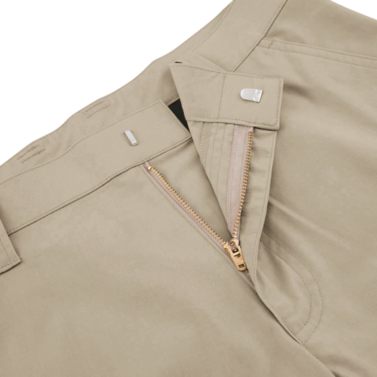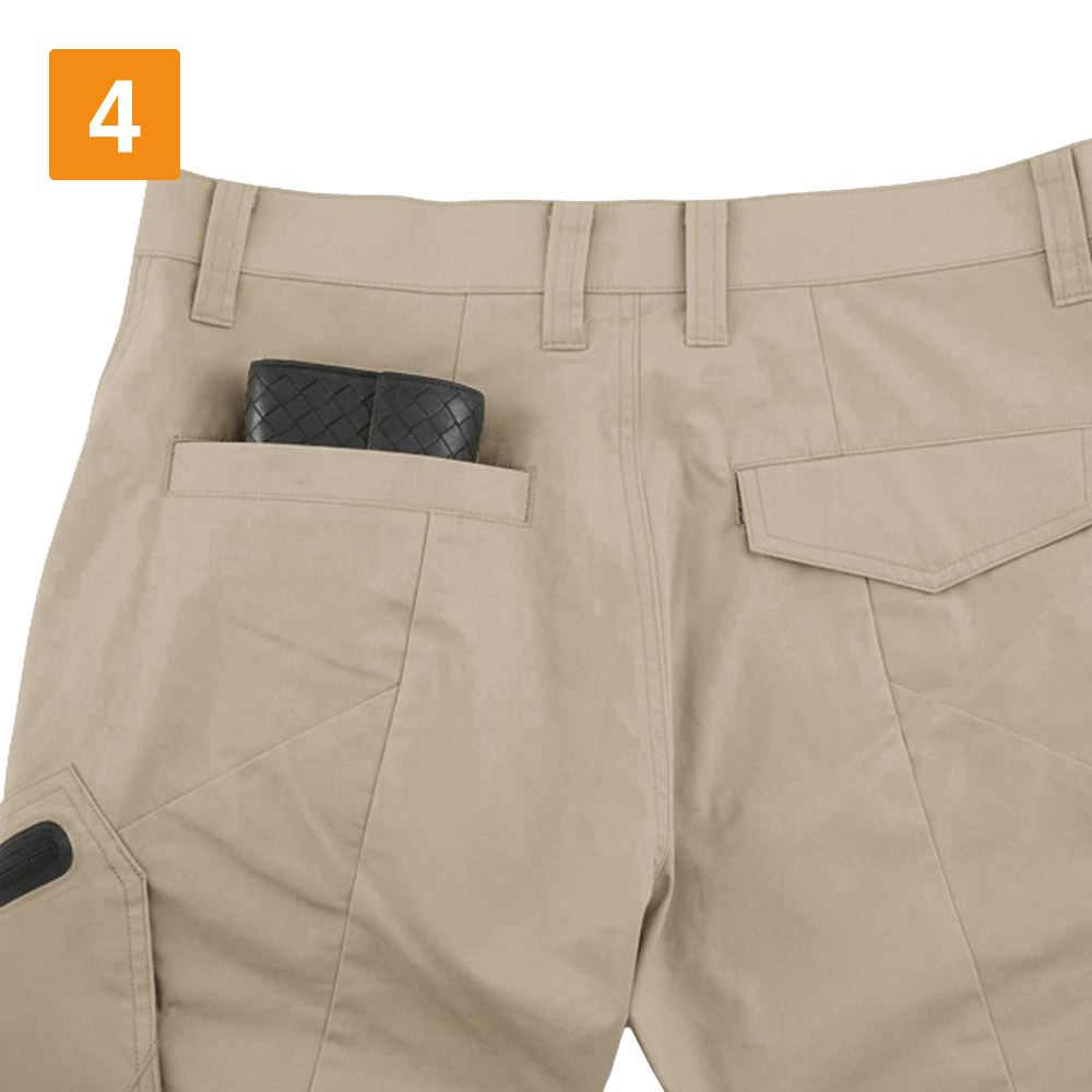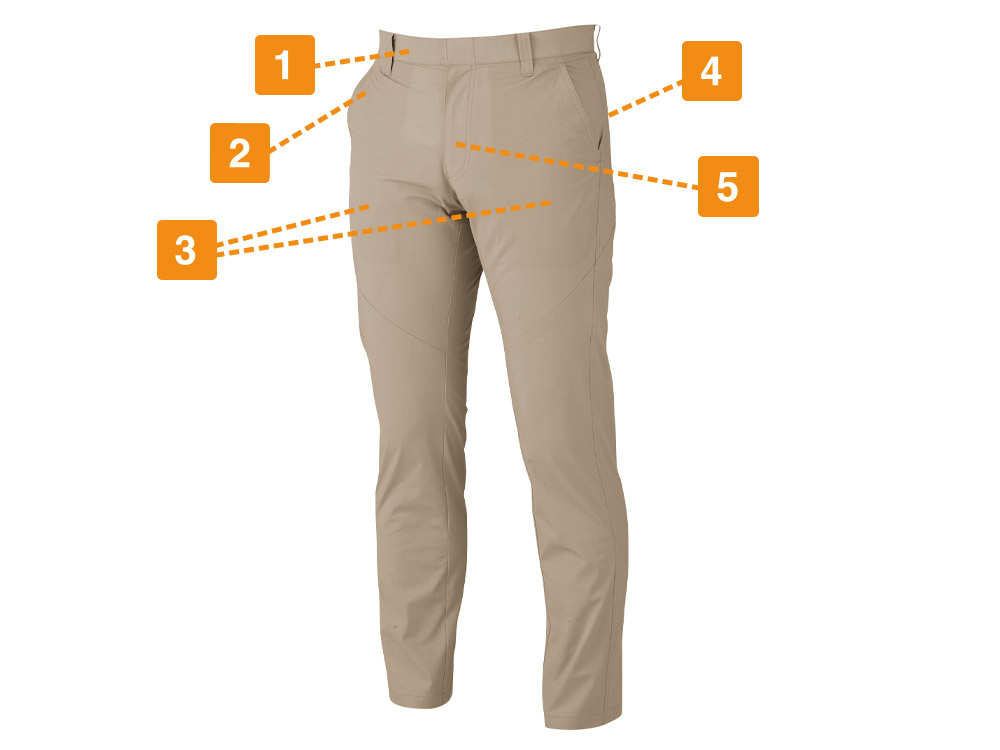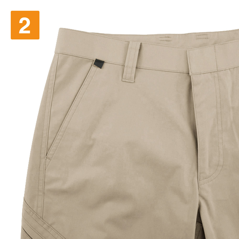 タックがないのがとてもスタイリッシュ!スポーティさを感じる生地感が、今までのスラックスにはないアクティブな印象を与えてくれます。身体にほどよくフィットするデザインで、動きやすいのも嬉しいポイント。今回は着用して、実際にさまざまな動作を試してみました。座る・立つなどの基本的な動作はもちろん、開脚、屈伸などの動きにもやわらかく生地が追従しストレスを感じさせません。体を大きく動かす現場で快適に着用いただけるのはもちろん、長時間座ったままの姿勢が続くデスクワークの方にもおすすめ。ストレッチ生地で脚に圧迫感がないので、一日中快適にお過ごしいただけます。