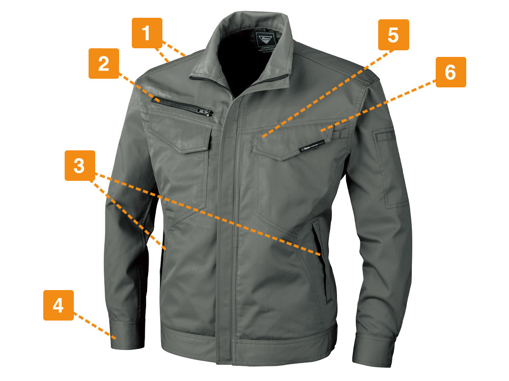 シンプルすぎず野暮ったい装飾もない、定番品として洗練されたおしゃれな作業着です。裾を絞らない、ストンと落ちるデザインがスマートなシルエットに。適度に綿を含むツイル生地を使用しているので、肌触りも抜群です。作業ブルゾンならではの収納力にも優れており、開口部にはフラップやファスナーを使用するなど、落下防止への工夫も行き届いた設計を採用。またサイズ展開も豊富なので、ユニフォームとしての導入もおすすめです。
