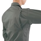 暑い季節の作業時に、快適に過ごすための工夫が散りばめられたシャツです。通気性抜群の清涼素材で、暑い環境下の長時間作業の間じゅう快適に。ボタンは外しやすいスナップボタンを採用しているので、作業中でも暑さに応じて開け閉めを楽に行えます。着脱も簡単で、ストレスを感じさせない一着です。袖まわりのボタンも同じくワンタッチで開け閉めが可能。袖はボタンが生地に隠れる仕様なので、物を傷つける心配を最小限に抑えてくれます。