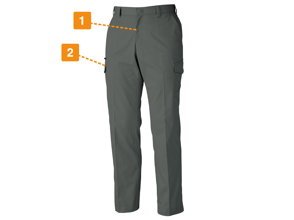 作業性を第一に考えたデザイン。シンプルでだぶつかないスタイリッシュな見た目で人気のズボンです。さらに収納力と動きやすさにこだわった、機能へのこだわりで選ばれています。定番の作業ズボンとして完成された美しさがあるので、洗練された企業イメージの表現にもぴったりの一着。サイズ展開も豊富なので、着る方一人ひとりの体型にあわせたぴったりサイズをお選びいただけます。どなたでも着やすく、作業用ユニフォームとしての導入もおすすめなズボンです。