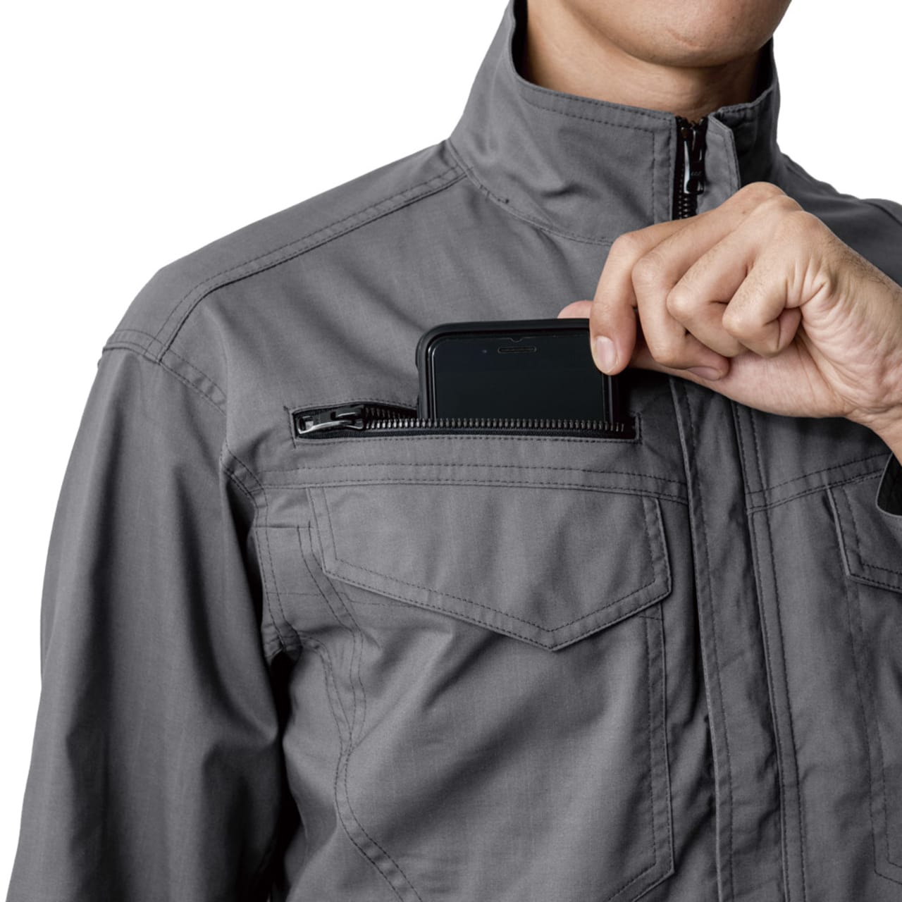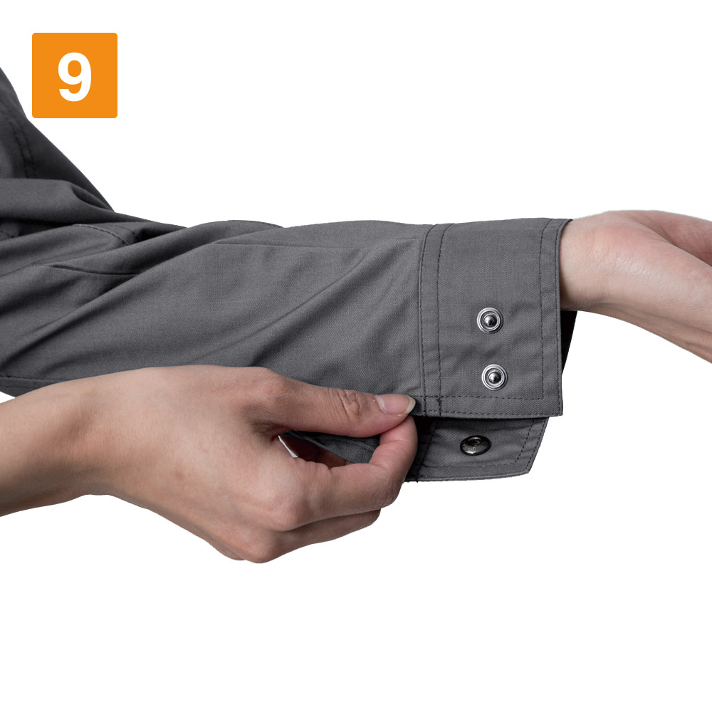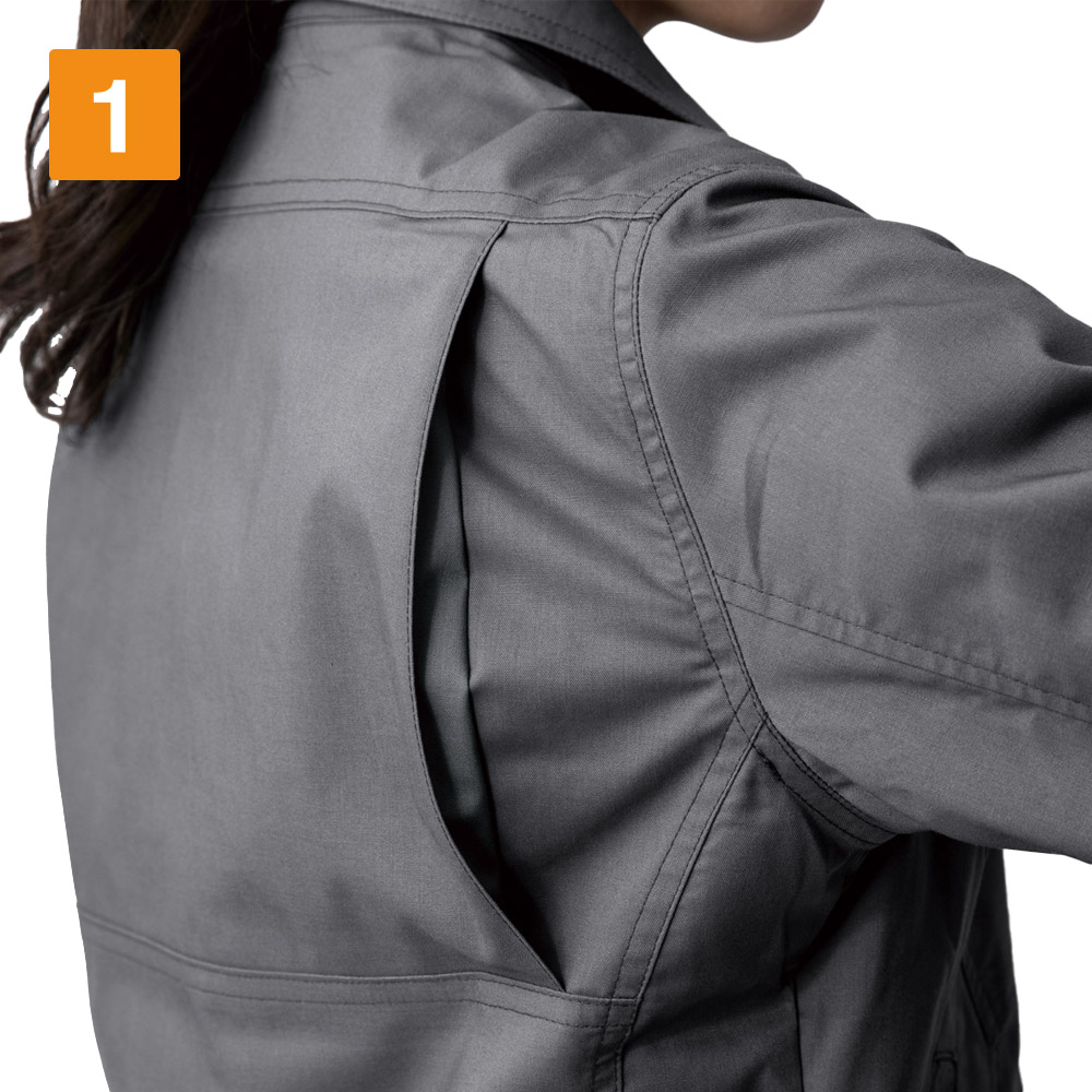 暑い時期、汗をかきながらの作業。そんなお仕事のストレスを低減してくれる一着です。長袖必須の環境下でも、涼やかに過ごせる生地を採用。通気性に優れ、汗をかいて熱のこもった服内部も、すぐにからりと空気が入れ替わります。また生地自体がさらさらとした清涼感あふれる素材。汗を吸ってずっしり…ということもなく、一日中快適な着心地が続きます。さらに脇部分には吸汗・消臭性能を備えたパッドを配置。匂いやベタつきを気にせずアクティブにお仕事ができます。