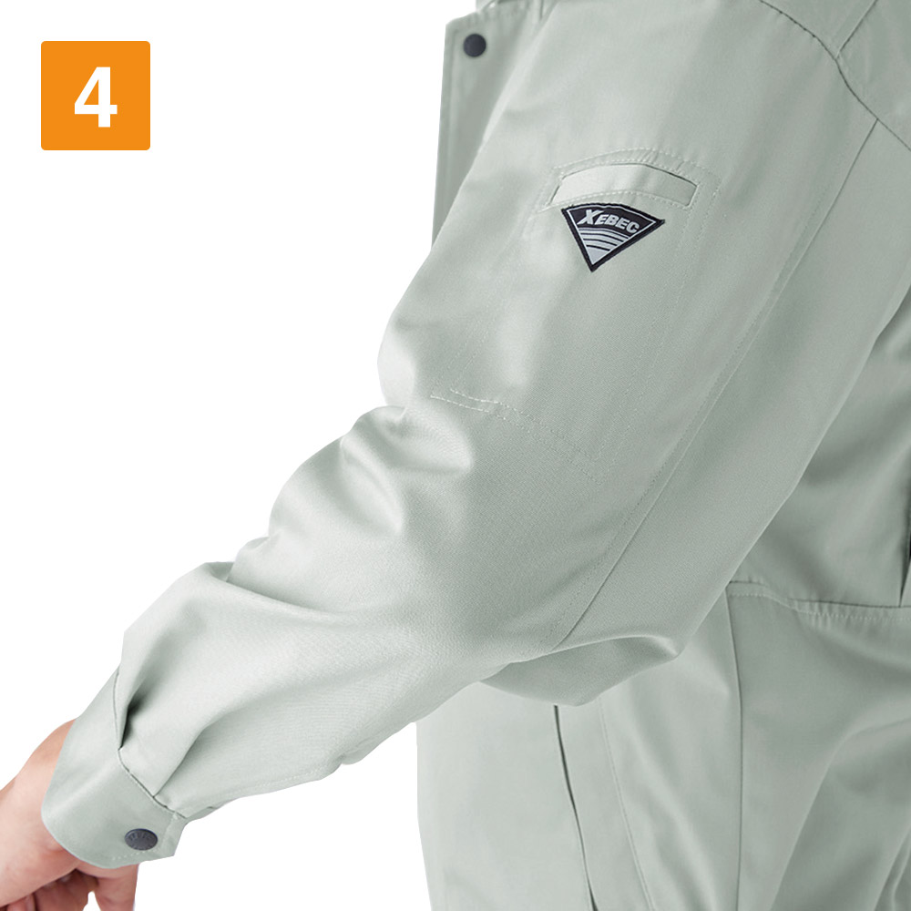とても気持ちいい肌触りが魅力のブルゾンです。綿が混紡されているため、着るごとに風合いが増していきます。だんだんと柔らかく馴染んでいくので、日々の着用により動きやすさがアップします。また背中にはジーベックオリジナルのプリーツロン加工が施されており、上半身の激しい動きにもしっかり追従。可動域を狭めず思い通りに動けるので、現場での安全な作業をアシストします。立体的なカッティングを施し、縫い目が肘を避けているので、曲げ伸ばしの時にも不快感を感じません。