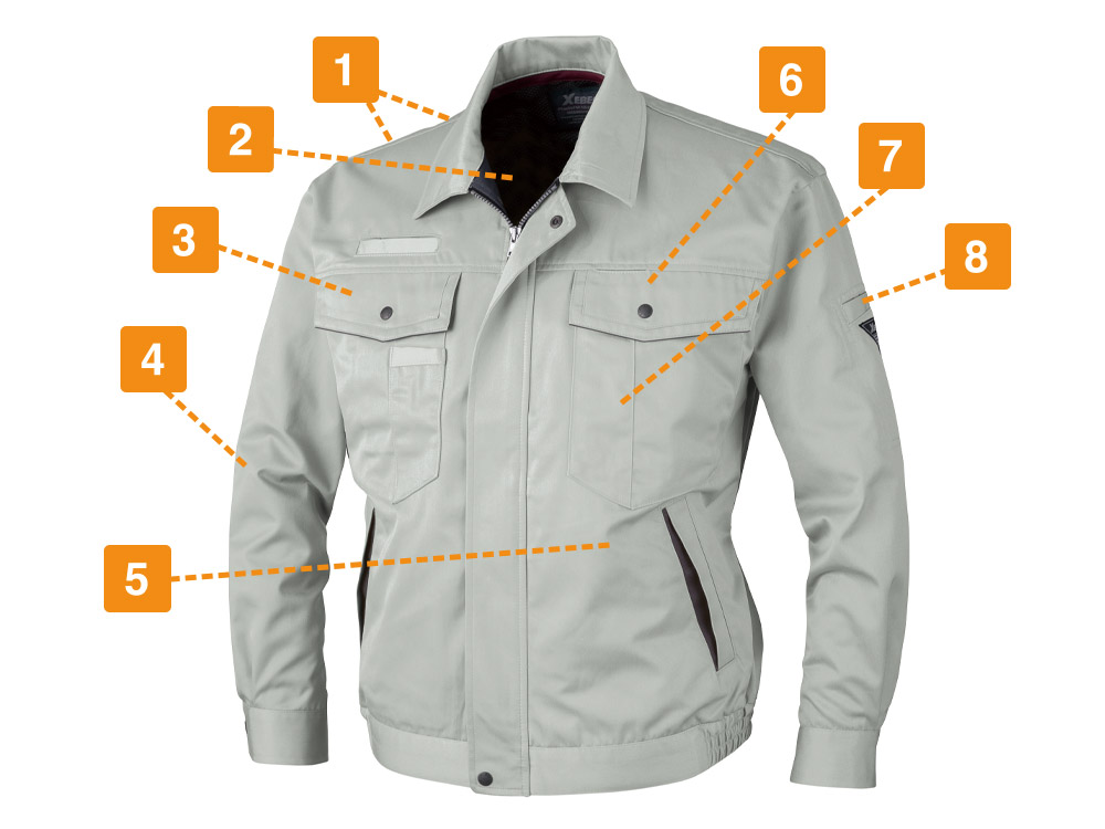 作業着らしいルックスにたくさんの収納を配置した、まさに現場作業のためのブルゾン。手帳、スケール、携帯電話はもちろん、なんとタブレットまで、全てブルゾンにしまっておける大容量設計が持ち味です。常に両手はフリーなため安全かつ快適、急な打ち合わせなどにも対応できます。また縫い目など、快適な作業のために細部までこだわった設計がポイントです。体のひねりや腕の曲げ伸ばしなど、求められる動作をスムーズに行える一着に仕上がっています。