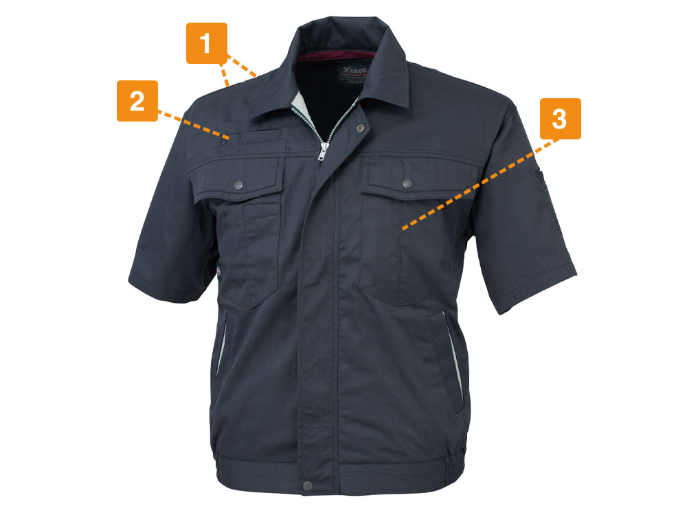本体に使用されているサマーツイル生地は、綿を35%配合していることによる柔らかい着心地が魅力。毎日着用し、洗濯を繰り返すことで、より肌馴染みのよい一着に成長していきます。また本体の一部にメッシュ素材を使用することで、爽やかな着心地をプラス。服の中に熱がこもらないので、長時間または暑い環境下でもストレスを感じにくい作りです。さらに洗濯を繰り返しても縮みにくく、シワにもなりにくいので、お手入れも簡単。毎日気軽にお洗濯していただけます。