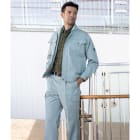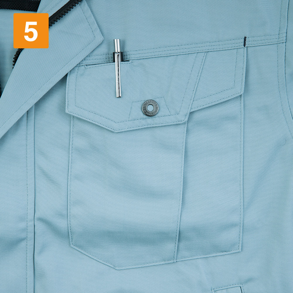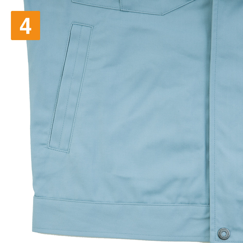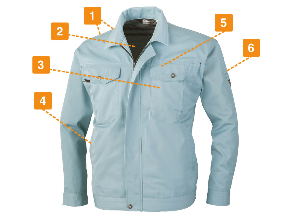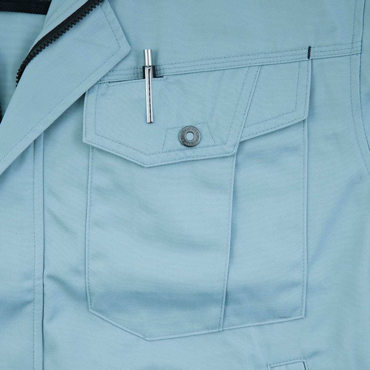 使用されている高機能ツイル生地が、さまざまな環境下での作業を快適に。帯電防止で冬場の静電気をしっかりカット。静電気NGの現場でも着用していただけます。また撥水加工で突然の雨にも完全対応。屋内外で活躍できる一着です。ツイル生地は綿を35%配合したハイブリッド仕様。肌触りがやわらかく、着るたびにどんどん肌に馴染んでくるのが魅力です。幅広いサイズが用意されており、一人ひとりの体型にぴったりの一着をお選びいただけます。また別途、同シリーズの女性用ブルゾンもご用意しておりますので、ぜひご覧ください。