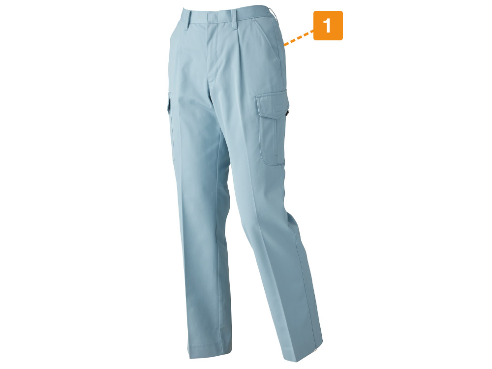 女性の体型に寄り添うよう、丁寧に設計されたラットズボン。すらりとした立ち姿にしてくれる美しいデザインです。ウエストはやさしくフィットしつつも、太ももまわりに適度なゆとりがあるので、変につっぱったりまた生地が余ったりする不快感がありません。体に合った作業着でお仕事をすることは、安全性・快適性に繋がる重要なポイント。ほどよくフィットすることで体も動かしやすいので、体を動かすお仕事からデスクワークまで、毎日のお仕事をスムーズかつ快適に行えます。