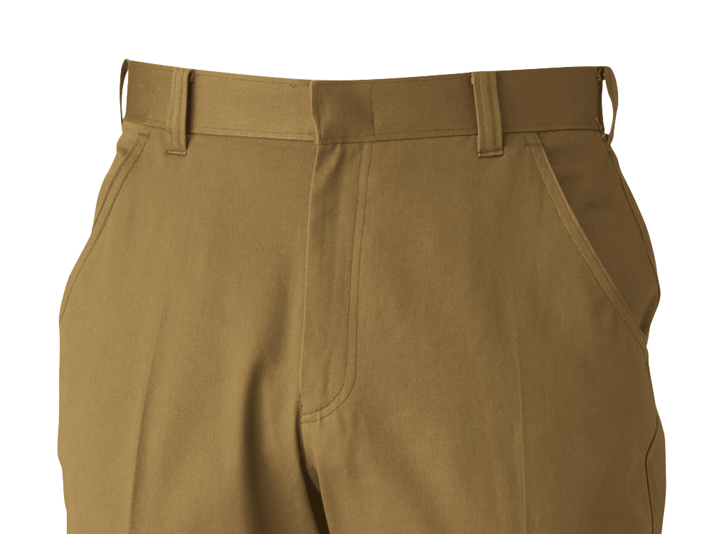 スタッフが実際に着用して着心地を体感してみました。綿100%でしか出せない肌触りが本当に気持ちよく、ずっと履いていてもストレスを感じません。また、化学繊維では出せない綿ならではの風合いが魅力。こなれた感じが出るので、よくあるツルツルしたスラックスにはない上質さを感じます。スマートなシルエットながらちゃんと動きやすいのも嬉しいポイント。脚まわりにほどよくゆとりがあるので、体を動かす作業からデスクワークまで、幅広くおすすめできるズボンです。