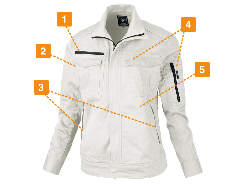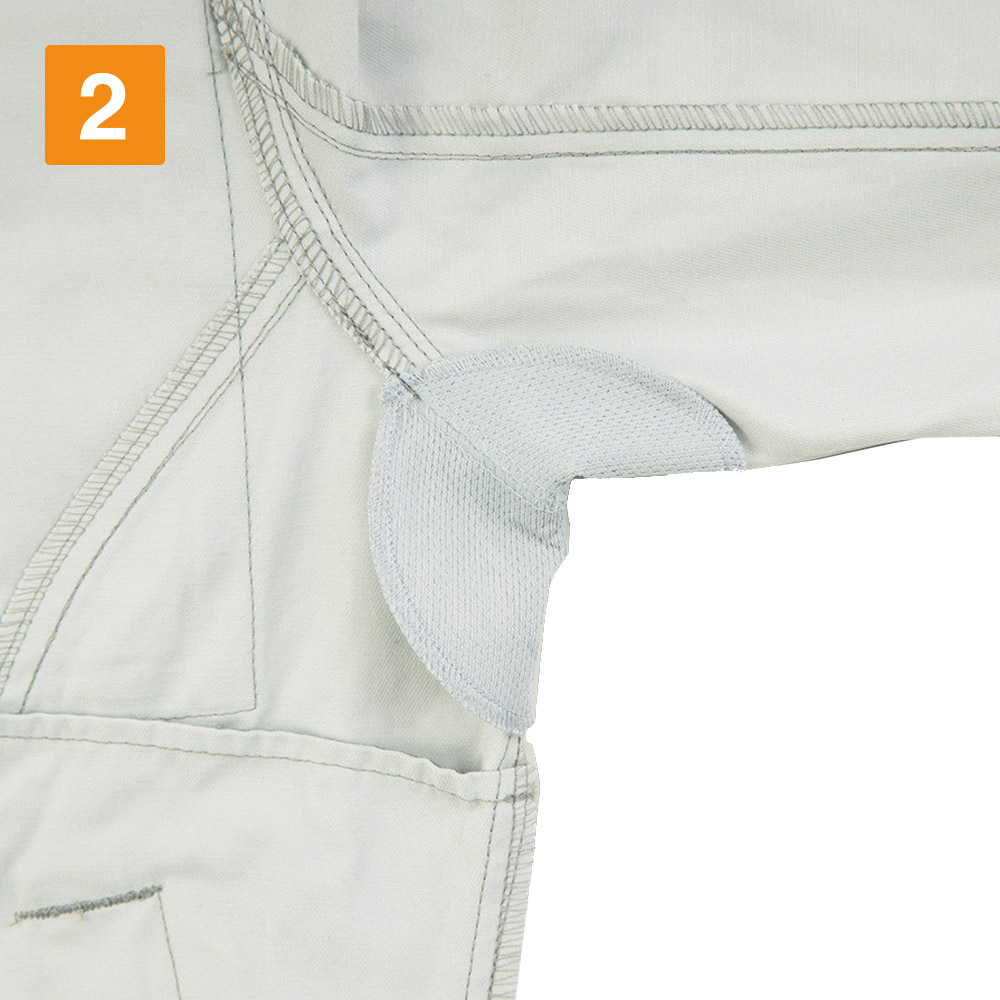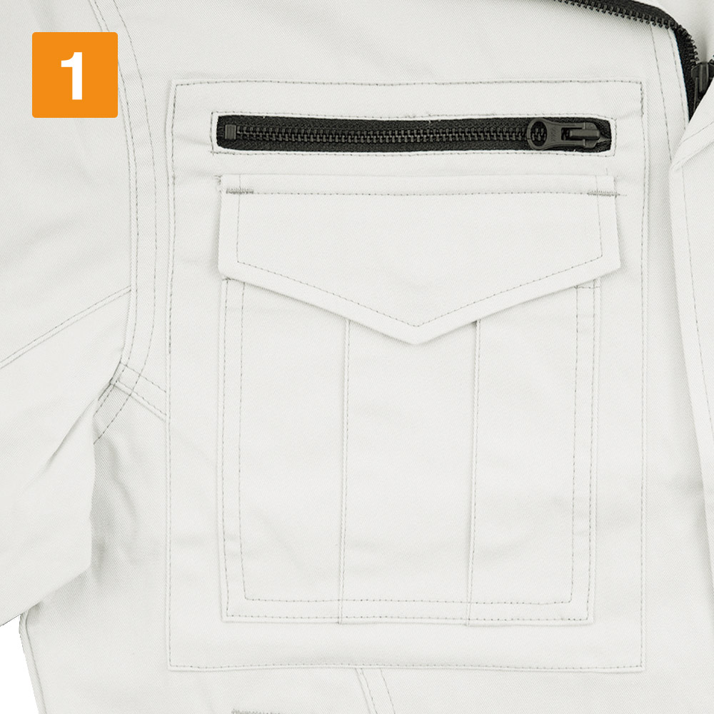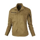 体に適度にフィットするシルエットが生む、動きやすさがとても快適です。布が余ったりつっぱったりしないので、大きな動作もとてもスムーズに行えます。また、細やかなディテールに作業着のかっこよさがあふれたデザイン。胸と袖に配置されたブラックカラーのファスナーが、着姿をきりりとした印象にしてくれます。ポケットのプリーツやステッチなどが作業着のこなれた雰囲気を演出してくれるのもポイント。脇には吸汗・消臭機能を備えたパッドが配置されているのも、女性用だけのこだわり。汗をかく作業でも快適な着用感が続きます。